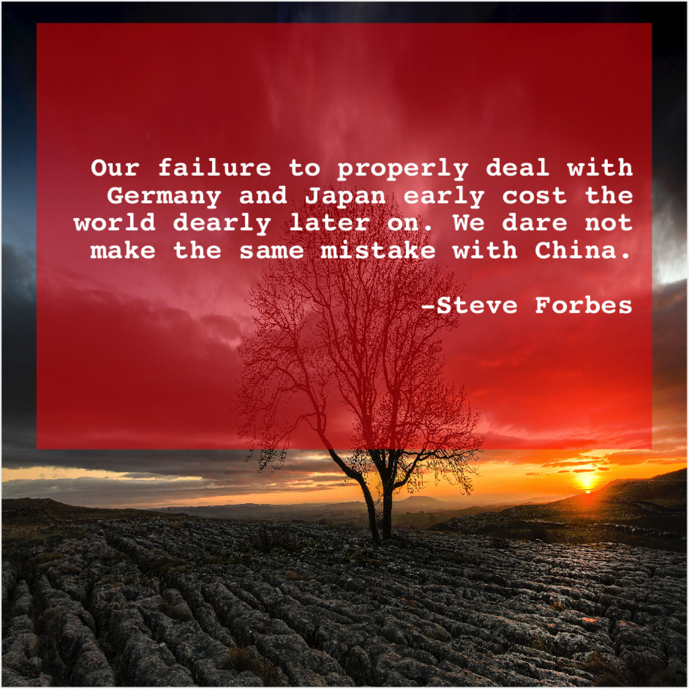 Steve Forbes Steve Forbes – Our failure to properly deal… April 24, 2019 admin “Our failure to properly deal with Germany and Japan early cost the world dearly later on. We dare not make the same mistake with China.”-Steve Forbes