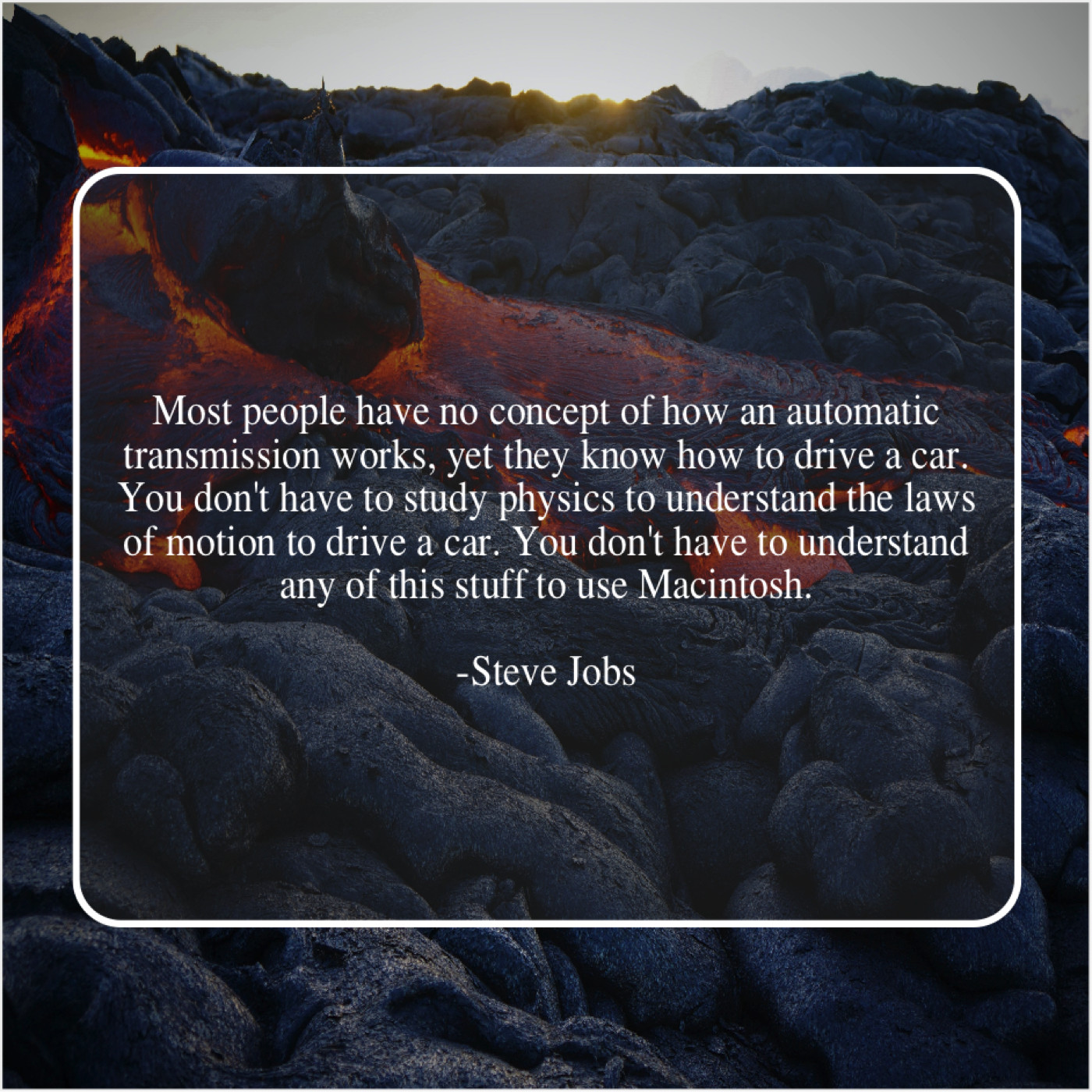 “Most people have no concept of how an automatic transmission works, yet they know how to drive a car. You don’t have to study physics to understand the laws of motion to drive a car. You don’t have to understand any of this stuff to use Macintosh.”