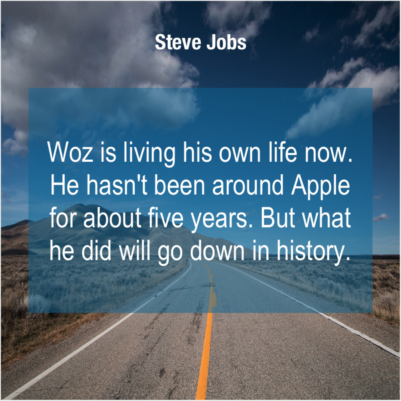 Steve Jobs Steve Jobs – Woz is living his own… April 15, 2019 admin “Woz is living his own life now. He hasn’t been around Apple for about five years. But what he did will go down in history.”-Steve Jobs