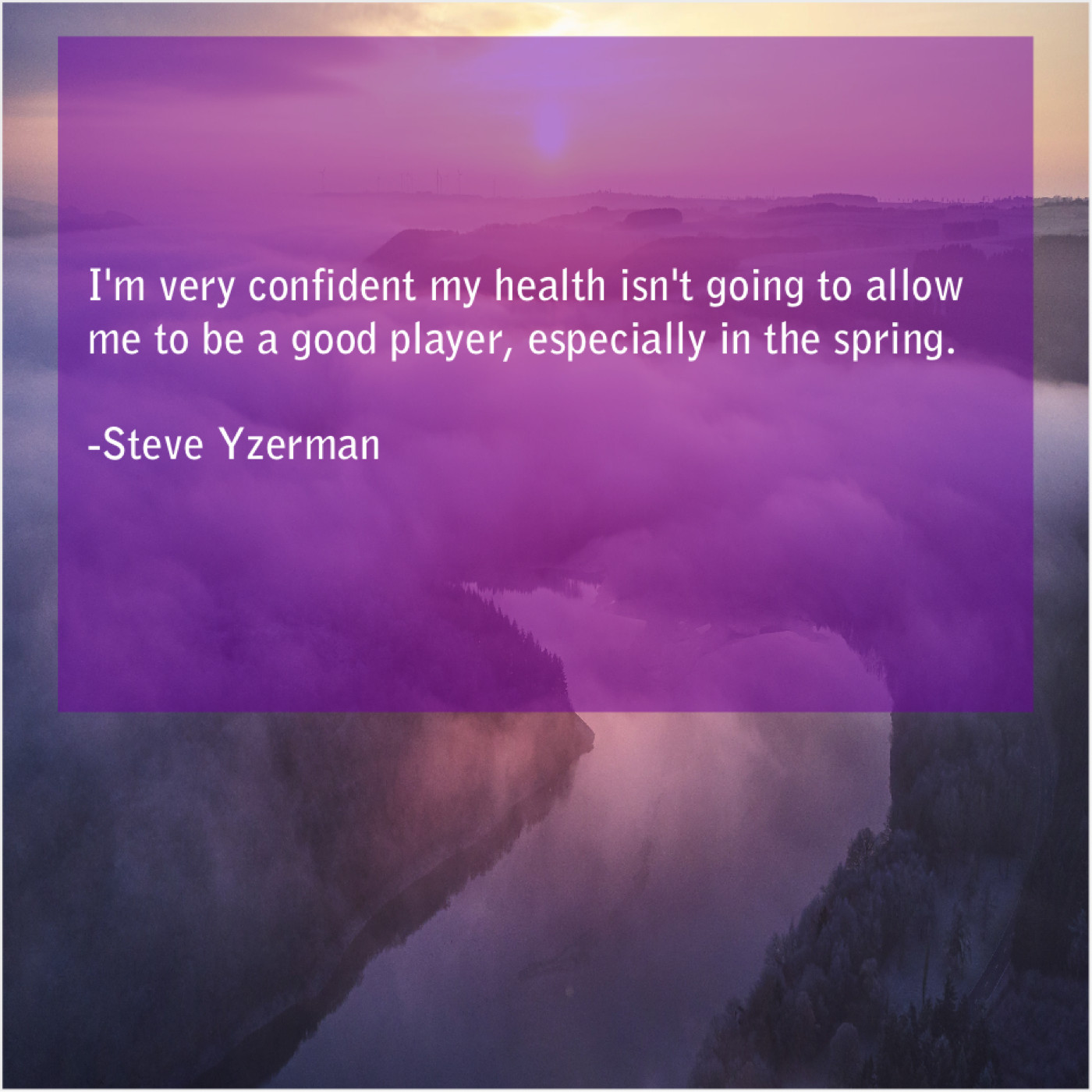 Steve Yzerman Steve Yzerman – I’m very confident my health… May 22, 2019 admin “I’m very confident my health isn’t going to allow me to be a good player, especially in the spring.”-Steve Yzerman