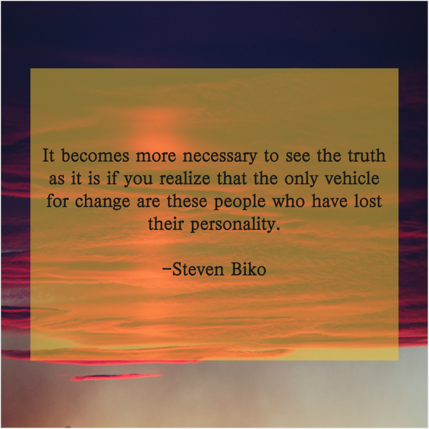 Steven Biko Steven Biko – It becomes more necessary to… December 30, 2018 admin “It becomes more necessary to see the truth as it is if you realize that the only vehicle for change are these people who have lost their personality.”-Steven Biko