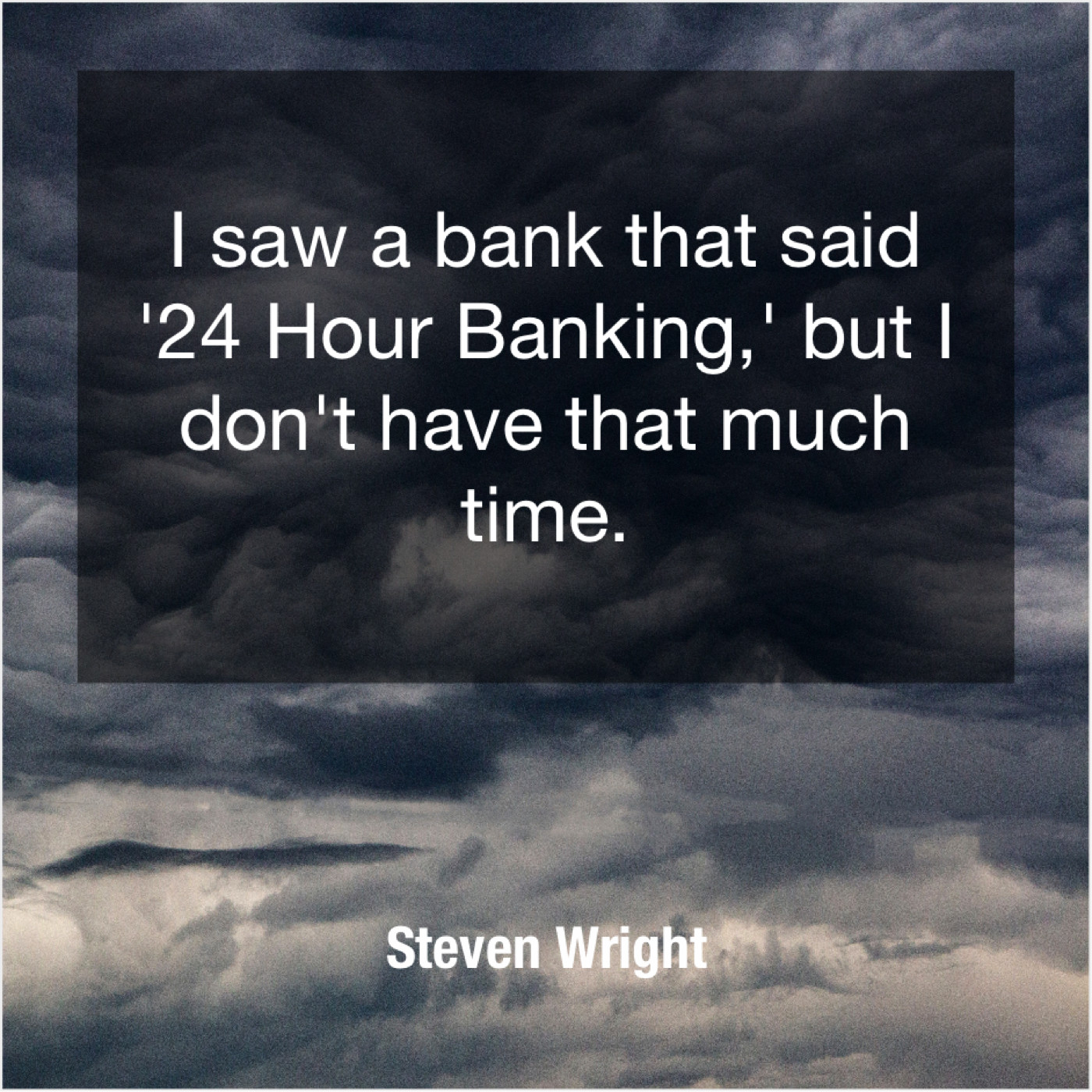 Steven Wright Steven Wright – I saw a bank that… December 21, 2018 admin “I saw a bank that said ’24 Hour Banking,’ but I don’t have that much time.”-Steven Wright
