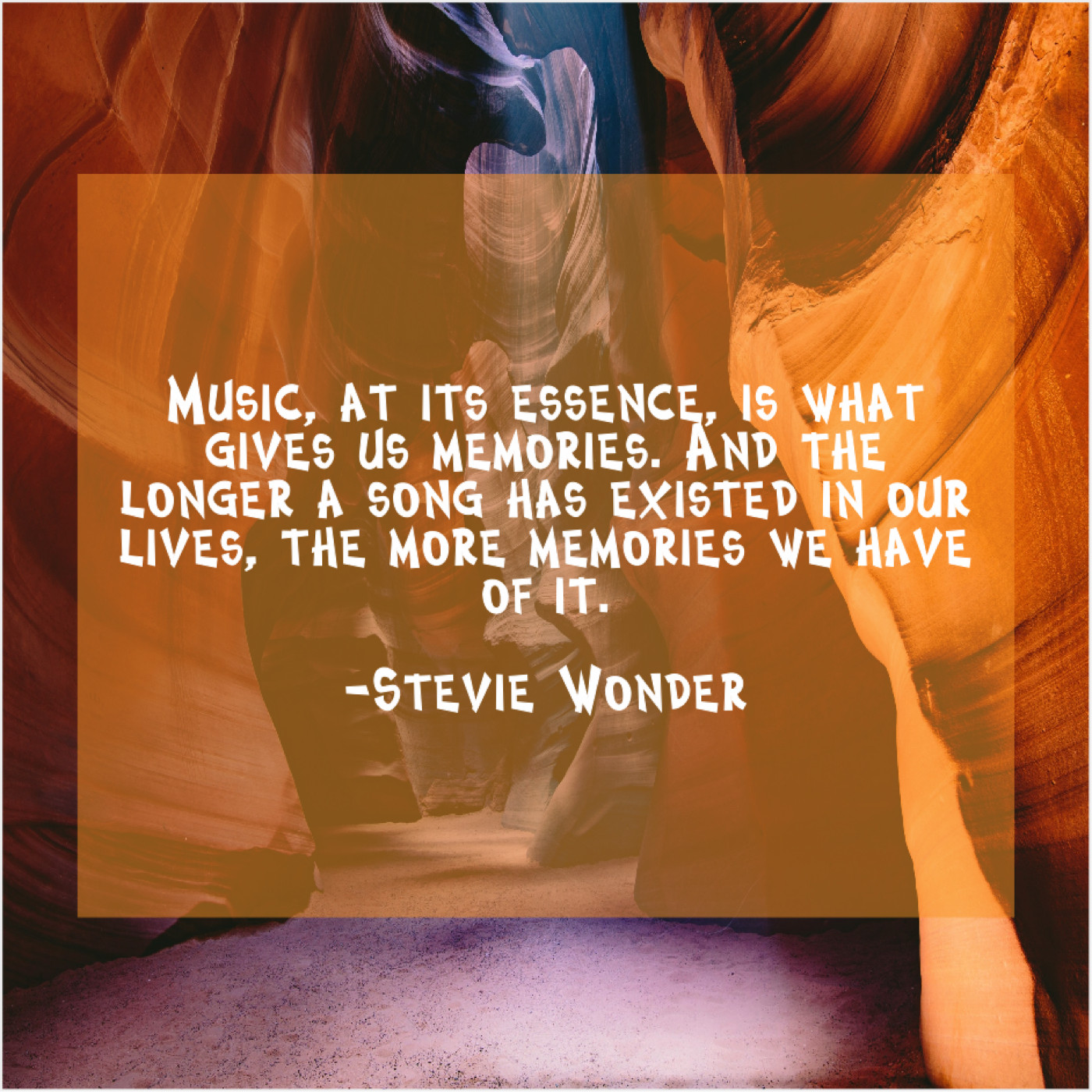 Stevie Wonder Stevie Wonder – Music, at its essence, is… August 30, 2019 admin “Music, at its essence, is what gives us memories. And the longer a song has existed in our lives, the more memories we have of it.”-Stevie Wonder
