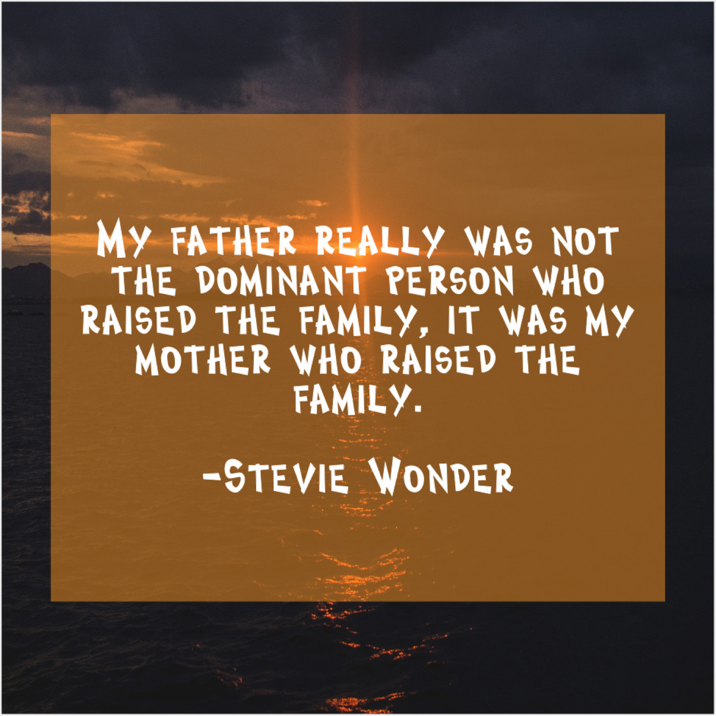 Stevie Wonder Stevie Wonder – My father really was not… July 16, 2019 admin “My father really was not the dominant person who raised the family, it was my mother who raised the family.”-Stevie Wonder