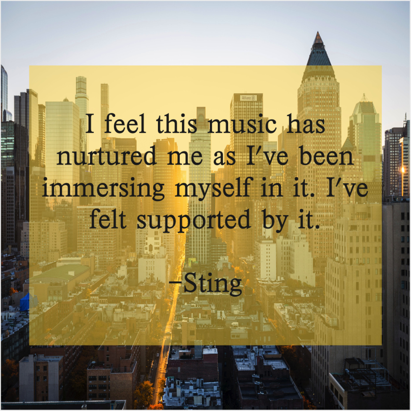 Sting Sting – I feel this music has… August 18, 2019 admin “I feel this music has nurtured me as I’ve been immersing myself in it. I’ve felt supported by it.”-Sting