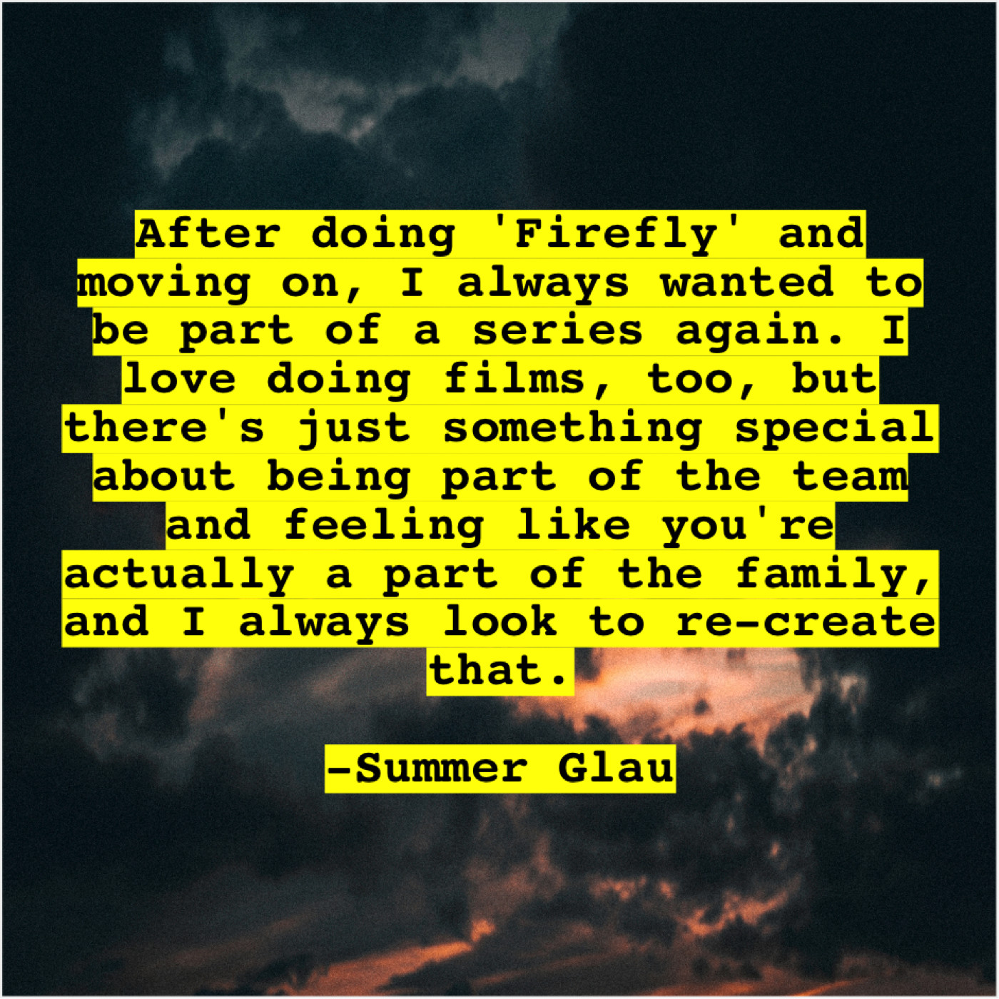 “After doing ‘Firefly’ and moving on, I always wanted to be part of a series again. I love doing films, too, but there’s just something special about being part of the team and feeling like you’re actually a part of the family, and I always look to re-create that.”