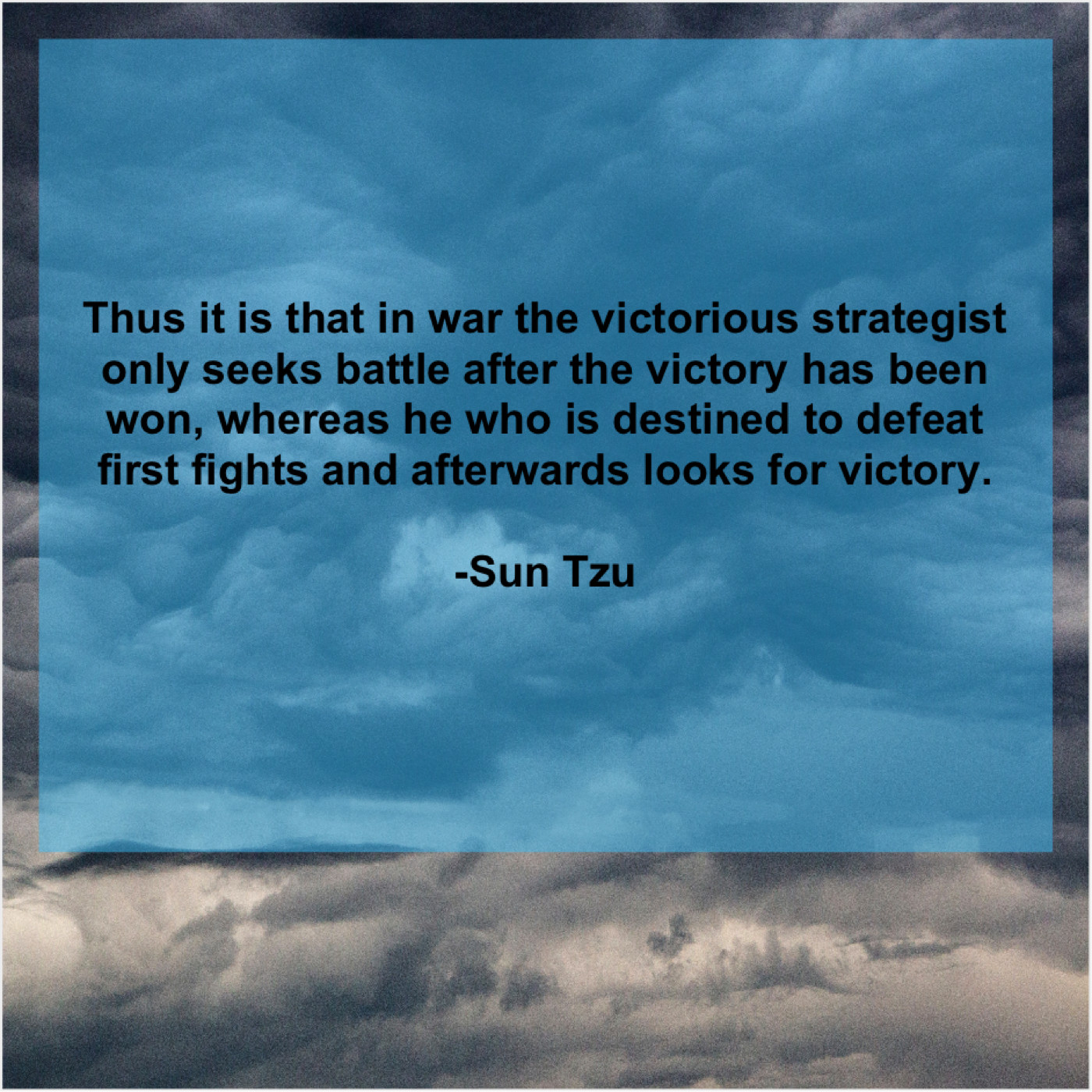 Sun Tzu Sun Tzu – Thus it is that in… September 22, 2019 admin “Thus it is that in war the victorious strategist only seeks battle after the victory has been won, whereas he who is destined to defeat first fights and afterwards looks for victory.”-Sun Tzu