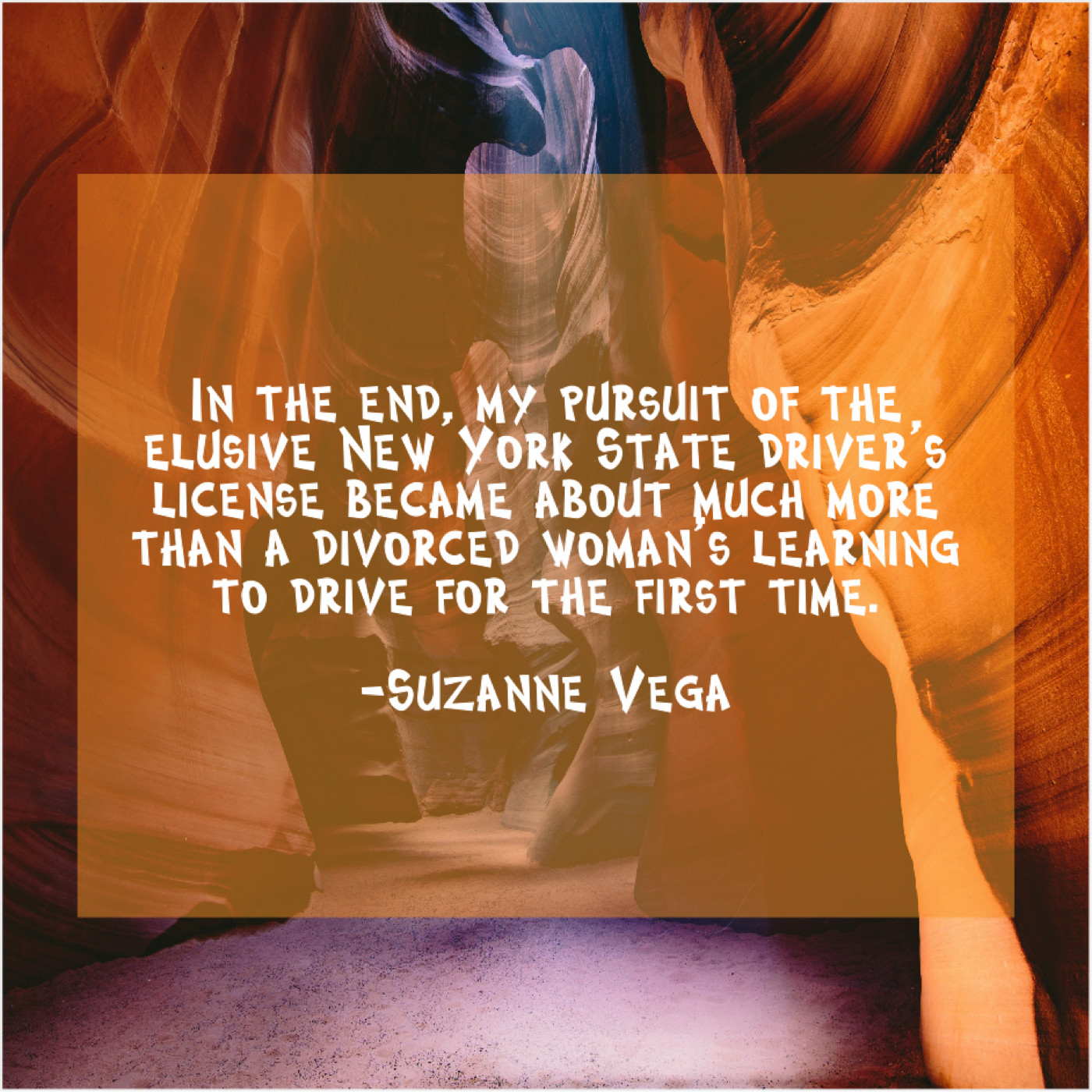 Suzanne Vega Suzanne Vega – In the end, my pursuit… April 8, 2019 admin “In the end, my pursuit of the elusive New York State driver’s license became about much more than a divorced woman’s learning to drive for the first time.”-Suzanne Vega