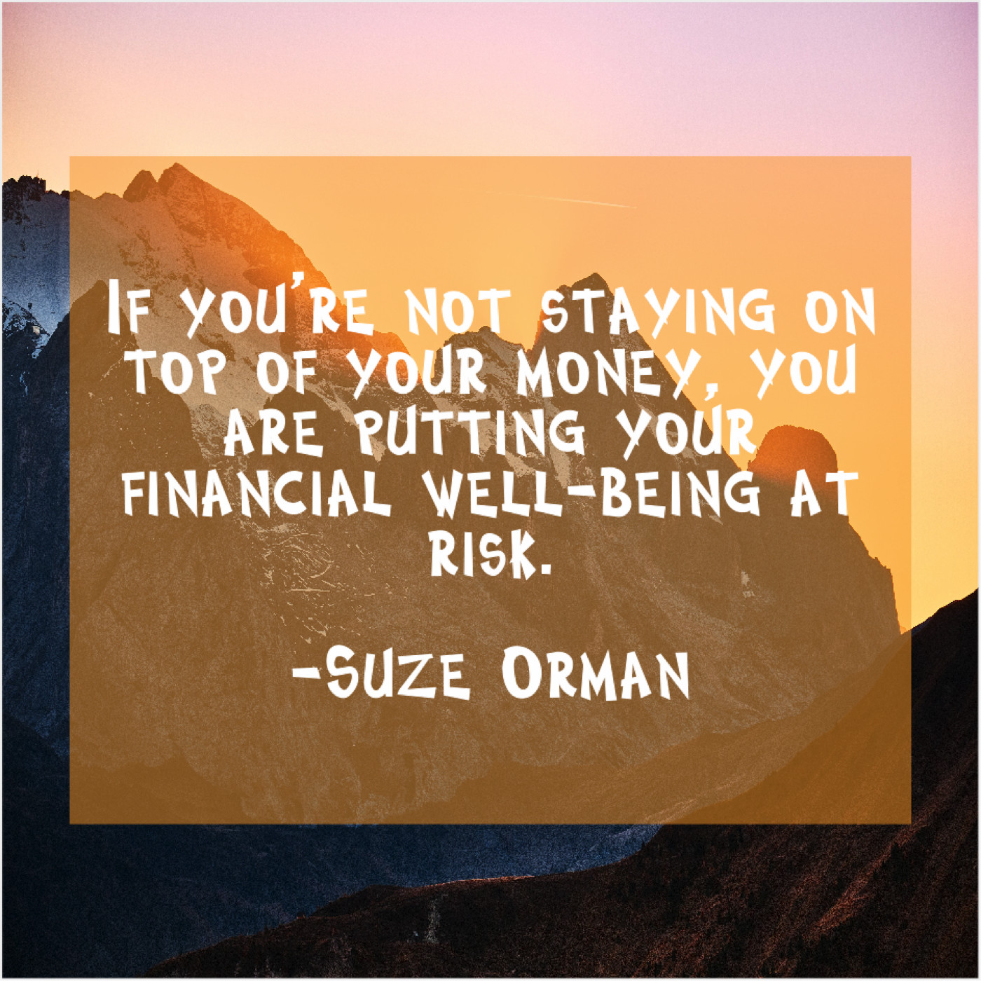 Suze Orman Suze Orman – If you’re not staying on… October 17, 2019 admin “If you’re not staying on top of your money, you are putting your financial well-being at risk.”-Suze Orman