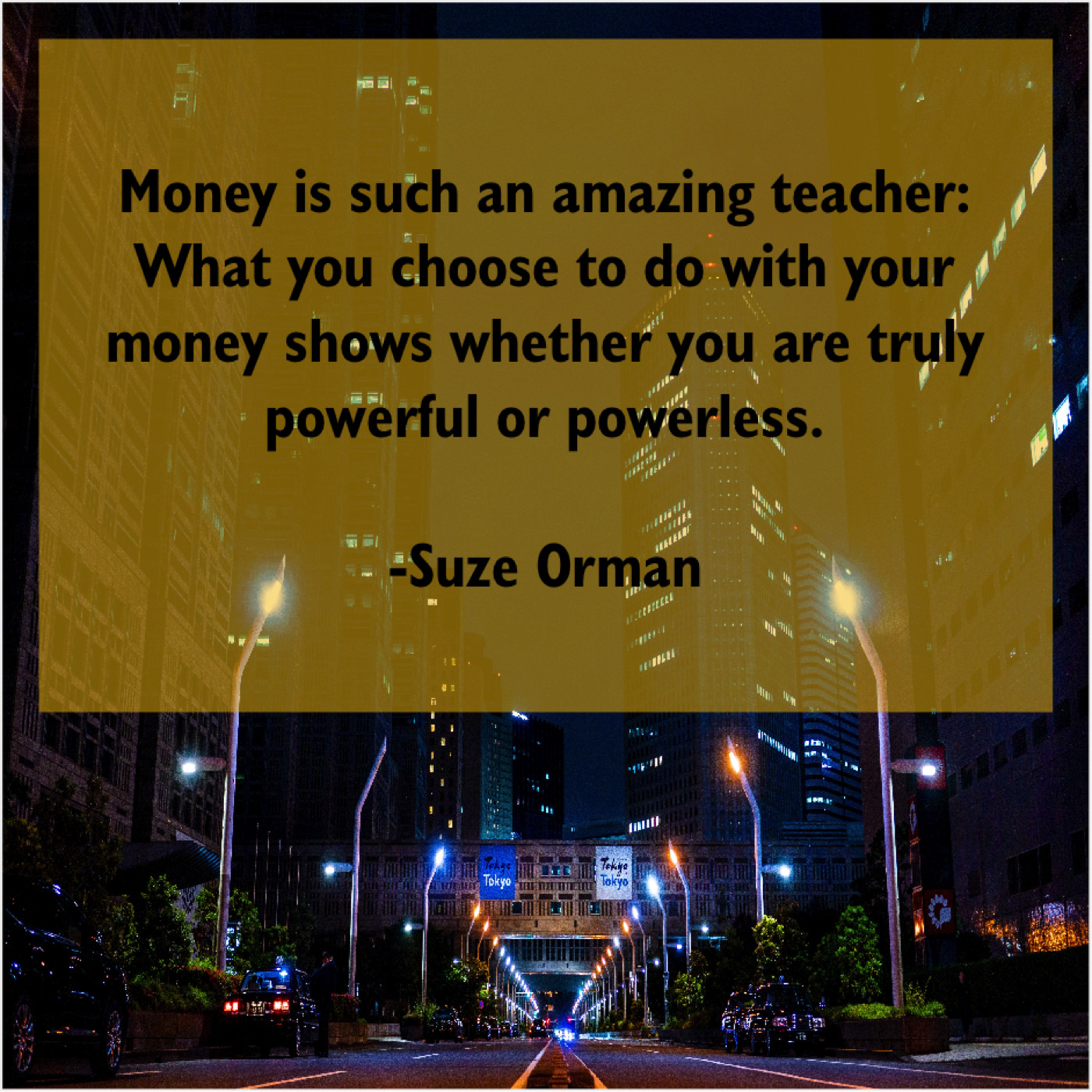 Suze Orman Suze Orman – Money is such an amazing… August 19, 2019 admin “Money is such an amazing teacher: What you choose to do with your money shows whether you are truly powerful or powerless.”-Suze Orman