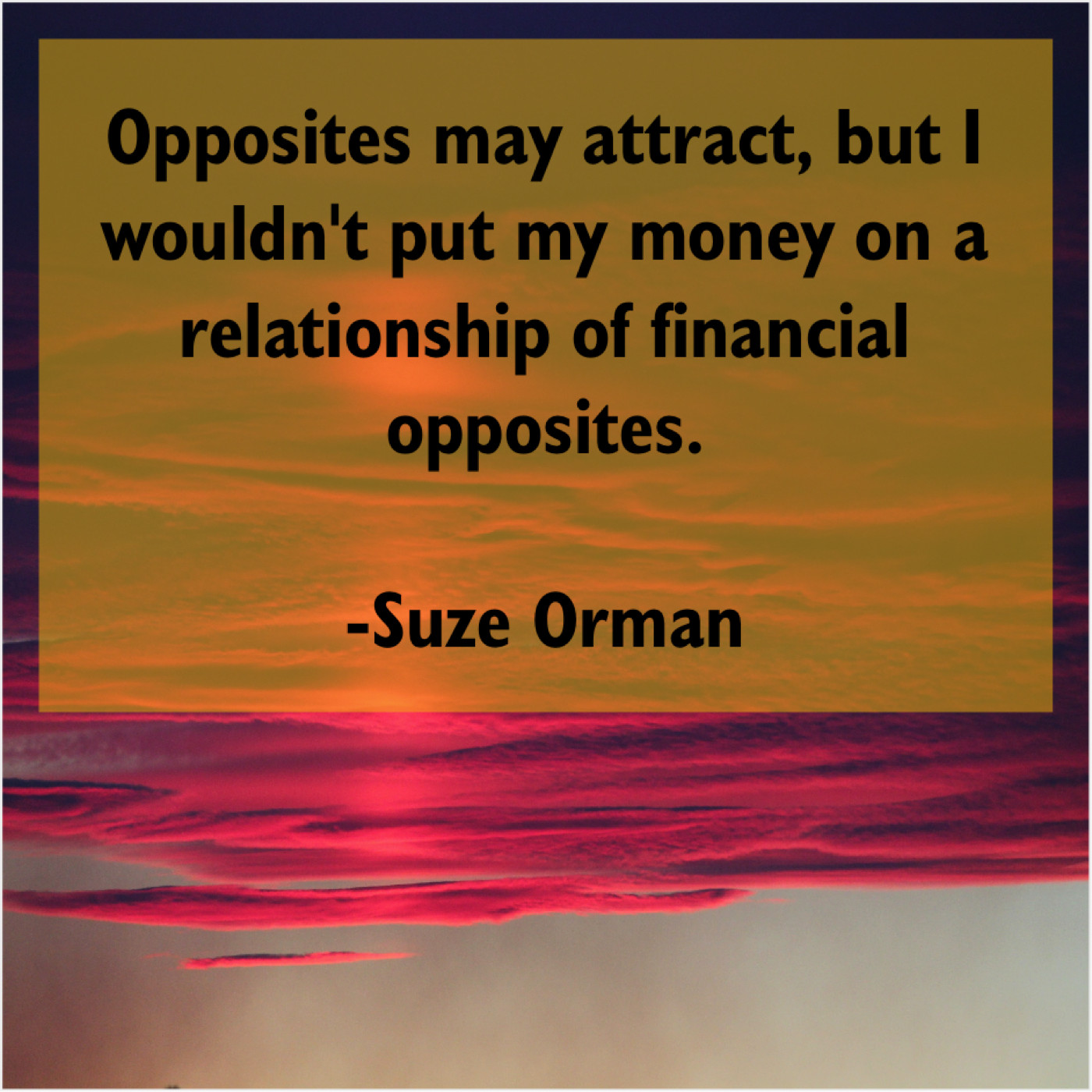 Suze Orman Suze Orman – Opposites may attract, but I… August 20, 2019 admin “Opposites may attract, but I wouldn’t put my money on a relationship of financial opposites.”-Suze Orman