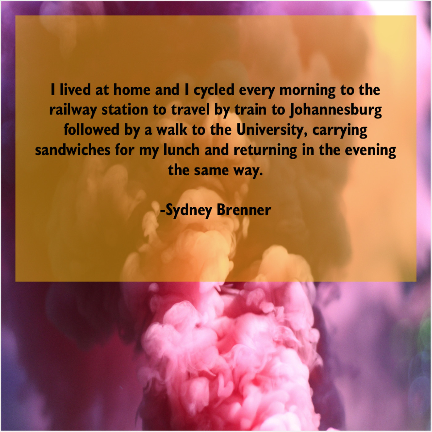 Sydney Brenner Sydney Brenner – I lived at home and… June 1, 2019 admin “I lived at home and I cycled every morning to the railway station to travel by train to Johannesburg followed by a walk to the University, carrying sandwiches for my lunch and returning in the evening the same way.”-Sydney Brenner