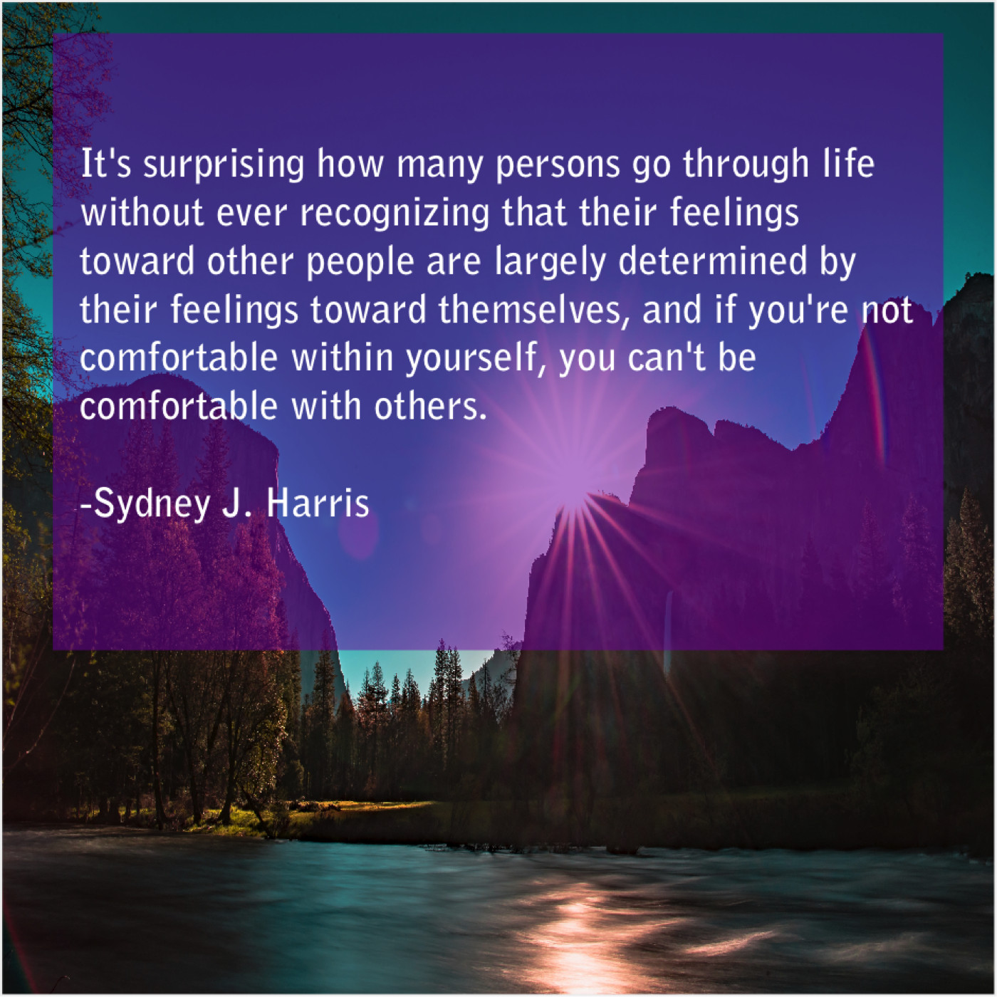 “It’s surprising how many persons go through life without ever recognizing that their feelings toward other people are largely determined by their feelings toward themselves, and if you’re not comfortable within yourself, you can’t be comfortable with others.”