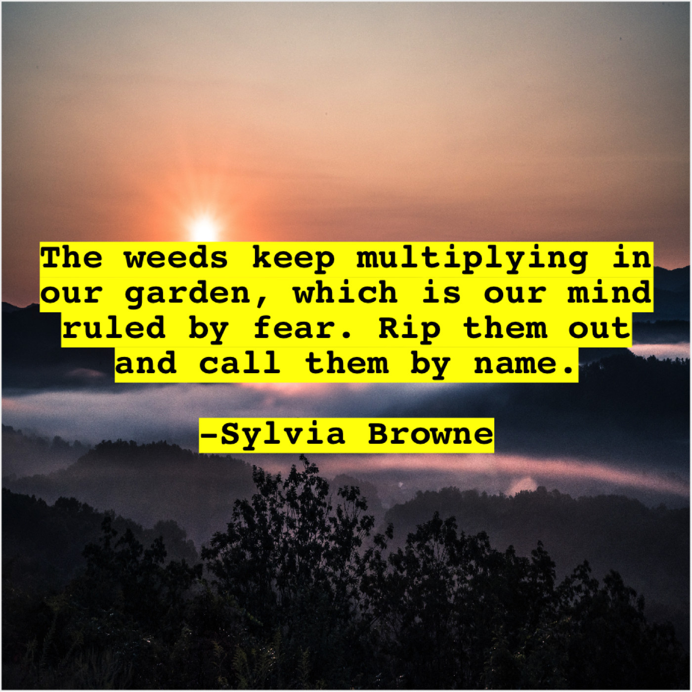 Sylvia Browne Sylvia Browne – The weeds keep multiplying in… June 18, 2019 admin “The weeds keep multiplying in our garden, which is our mind ruled by fear. Rip them out and call them by name.”-Sylvia Browne