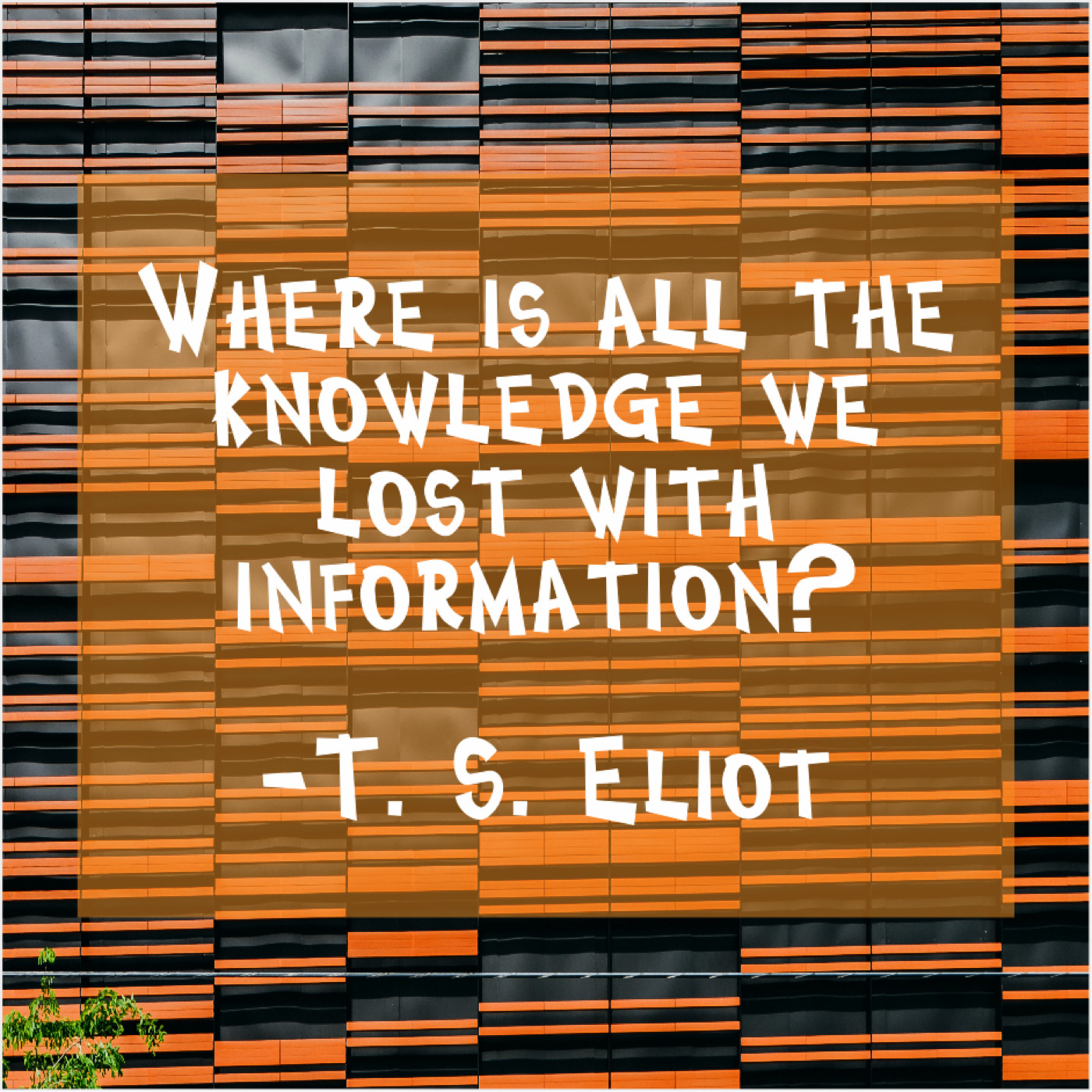 T. S. Eliot T. S. Eliot – Where is all the knowledge… December 18, 2018 admin “Where is all the knowledge we lost with information?”-T. S. Eliot