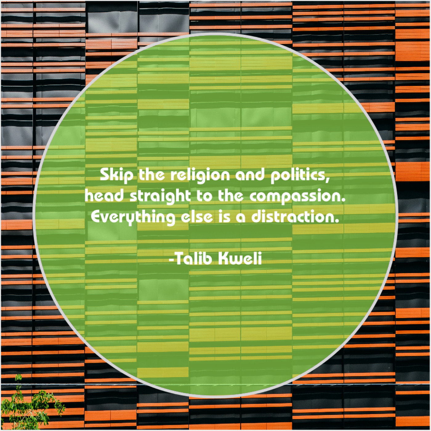 Talib Kweli Talib Kweli – Skip the religion and politics… June 26, 2019 admin “Skip the religion and politics, head straight to the compassion. Everything else is a distraction.”-Talib Kweli