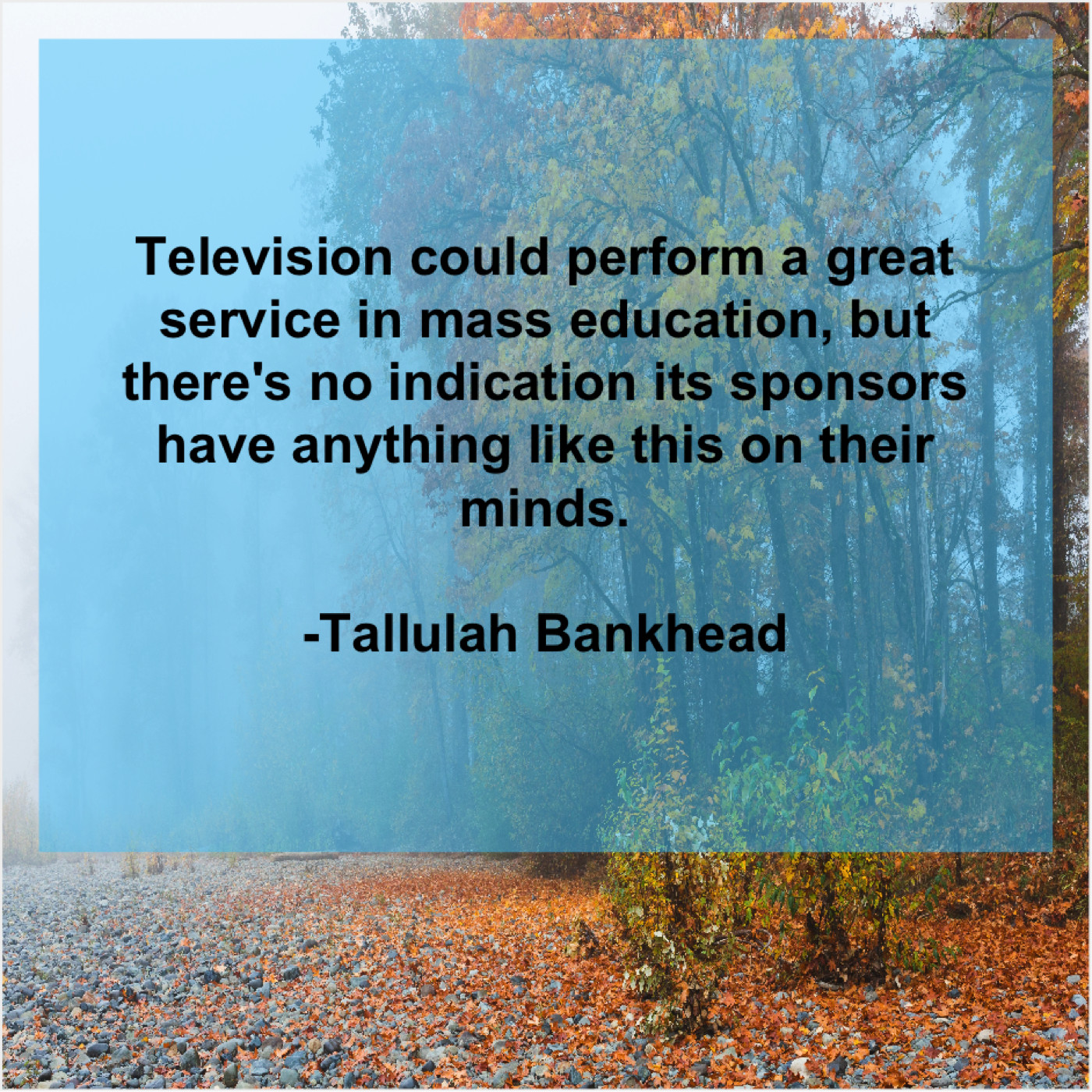 Tallulah Bankhead Tallulah Bankhead – Television could perform a great… June 11, 2019 admin “Television could perform a great service in mass education, but there’s no indication its sponsors have anything like this on their minds.”-Tallulah Bankhead