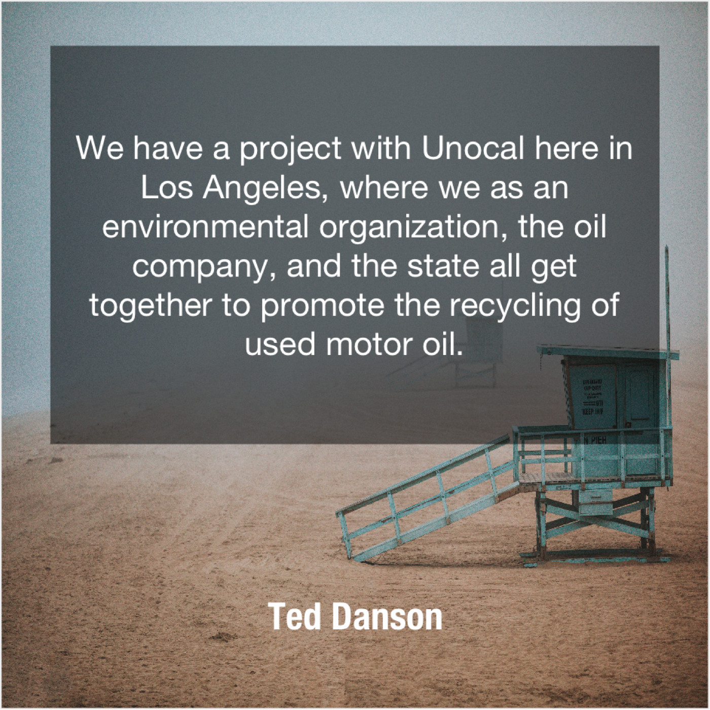 Ted Danson Ted Danson – We have a project with… May 23, 2019 admin “We have a project with Unocal here in Los Angeles, where we as an environmental organization, the oil company, and the state all get together to promote the recycling of used motor oil.”-Ted Danson