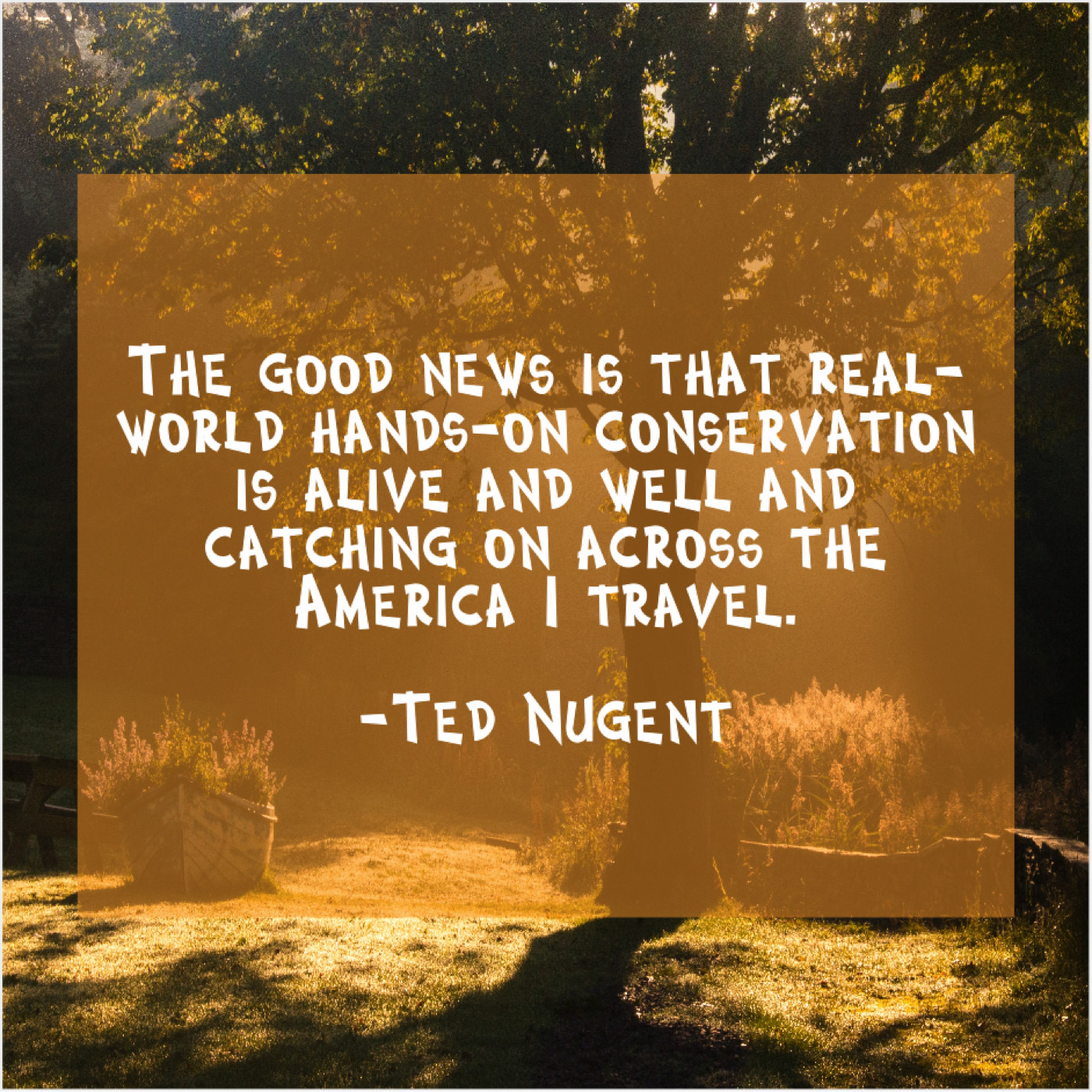 Ted Nugent Ted Nugent – The good news is that… April 4, 2019 admin “The good news is that real-world hands-on conservation is alive and well and catching on across the America I travel.”-Ted Nugent