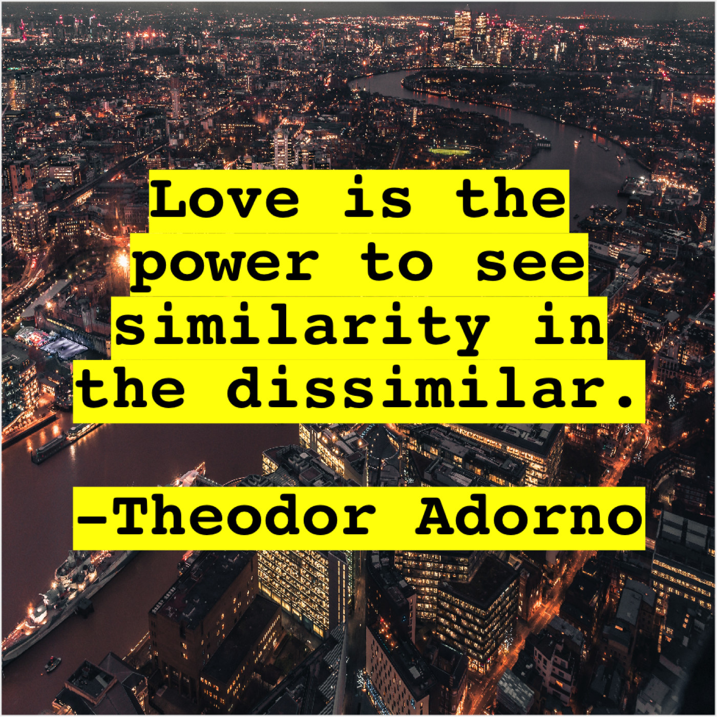Theodor Adorno Theodor Adorno – Love is the power to… July 12, 2019 admin “Love is the power to see similarity in the dissimilar.”-Theodor Adorno