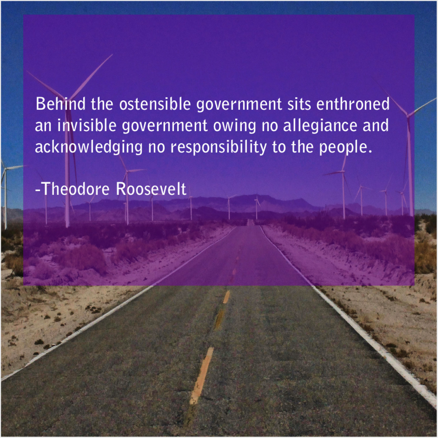 Theodore Roosevelt Theodore Roosevelt – Behind the ostensible government sits… May 16, 2019 admin “Behind the ostensible government sits enthroned an invisible government owing no allegiance and acknowledging no responsibility to the people.”-Theodore Roosevelt