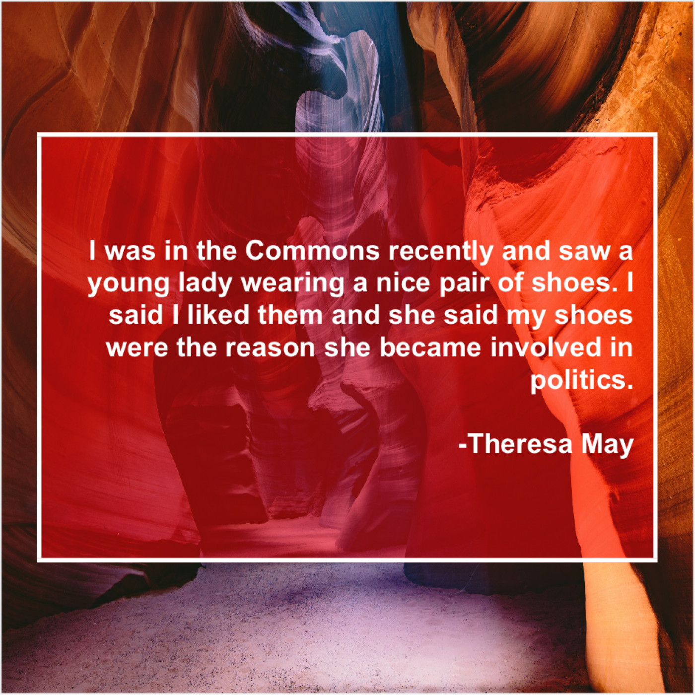 “I was in the Commons recently and saw a young lady wearing a nice pair of shoes. I said I liked them and she said my shoes were the reason she became involved in politics.”