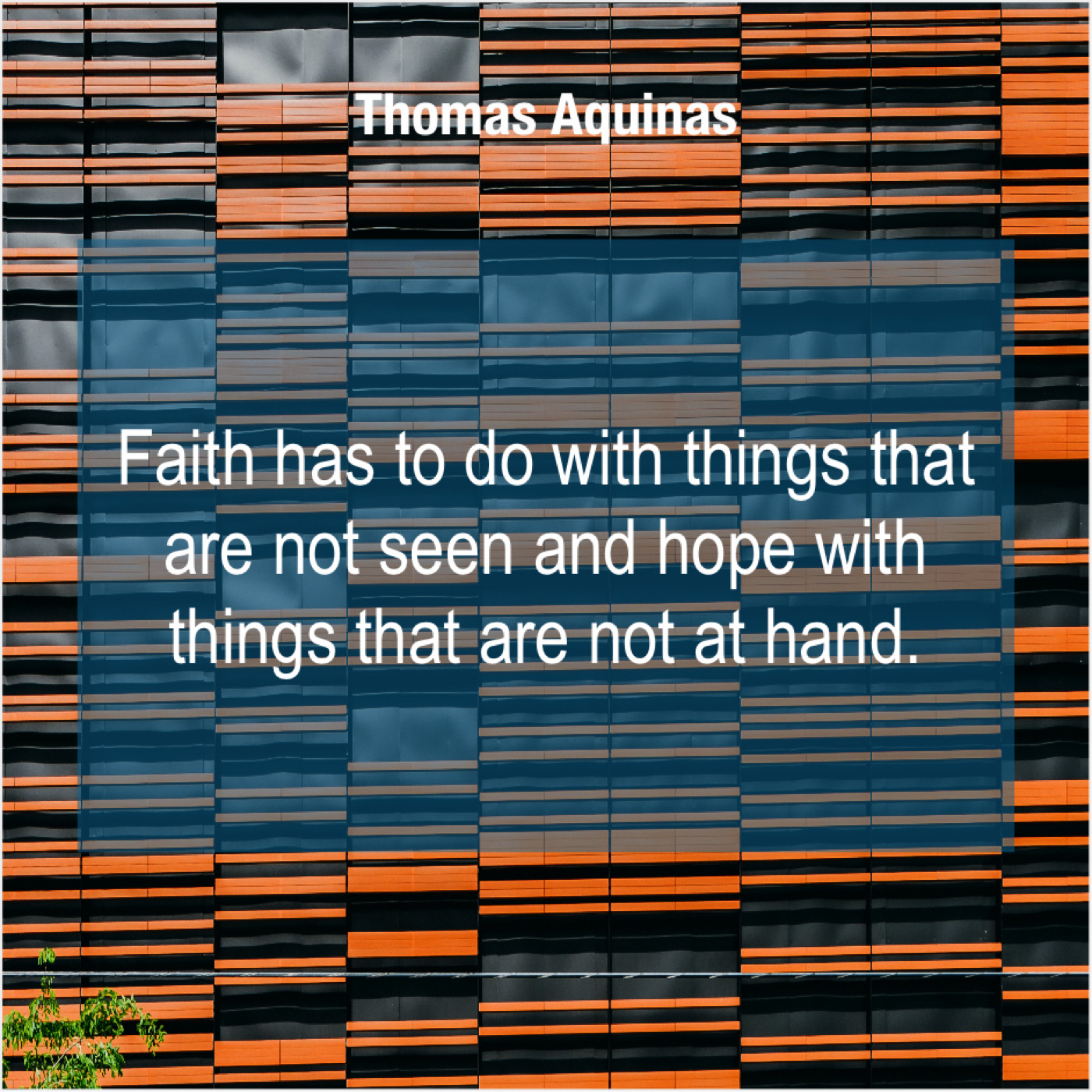 Thomas Aquinas Thomas Aquinas – Faith has to do with… July 1, 2019 admin “Faith has to do with things that are not seen and hope with things that are not at hand.”-Thomas Aquinas
