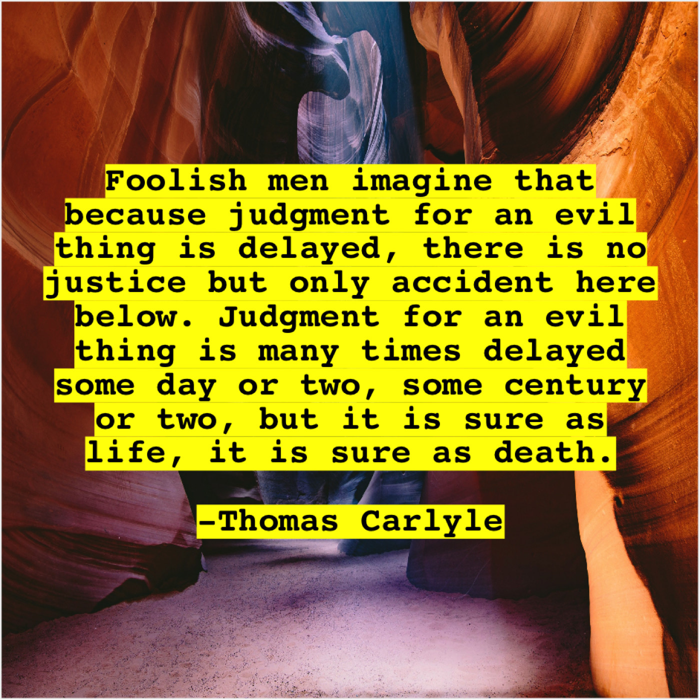 “Foolish men imagine that because judgment for an evil thing is delayed, there is no justice but only accident here below. Judgment for an evil thing is many times delayed some day or two, some century or two, but it is sure as life, it is sure as death.”