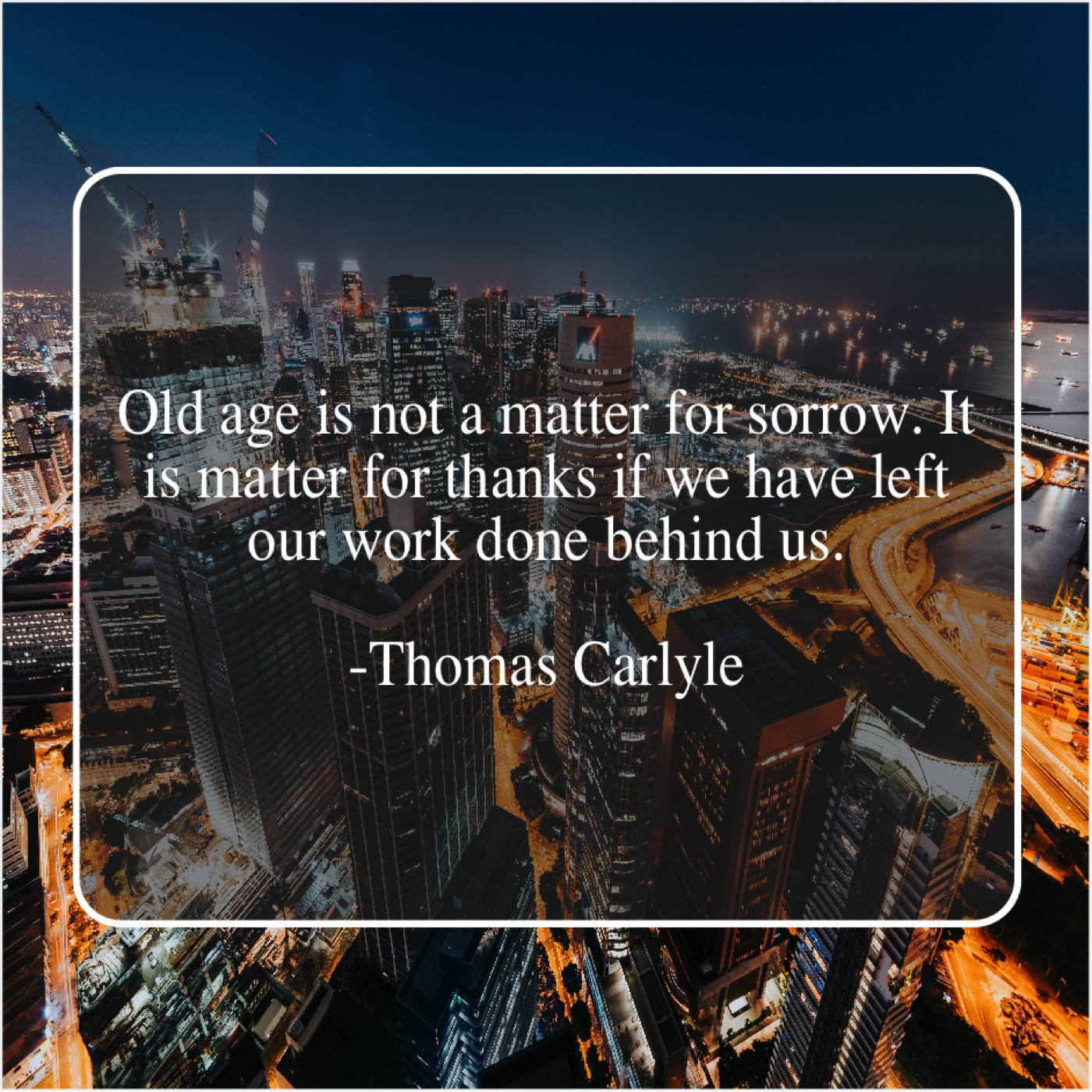Thomas Carlyle Thomas Carlyle – Old age is not a… July 28, 2019 admin “Old age is not a matter for sorrow. It is matter for thanks if we have left our work done behind us.”-Thomas Carlyle