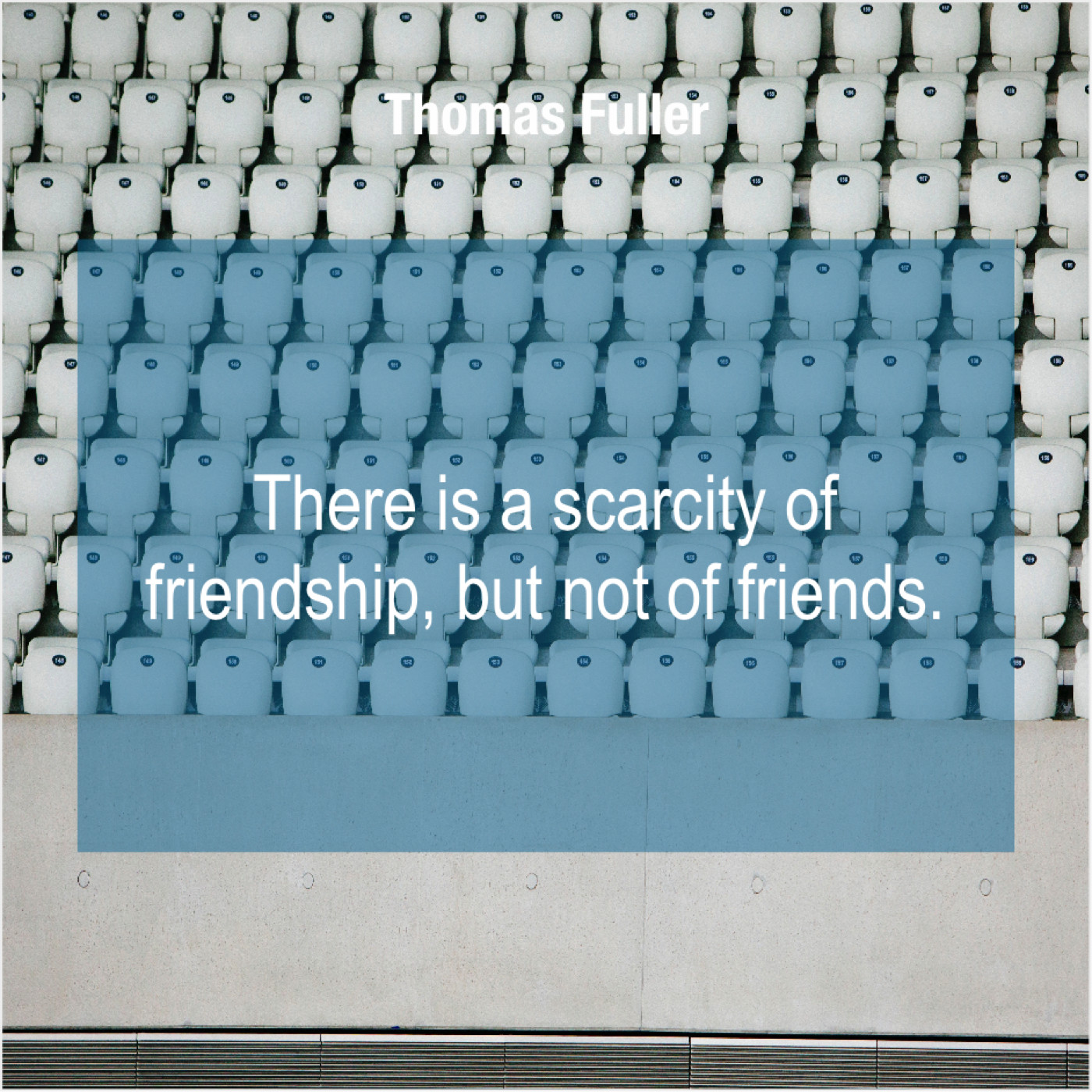 Thomas Fuller Thomas Fuller – There is a scarcity of… November 21, 2018 admin “There is a scarcity of friendship, but not of friends.”-Thomas Fuller
