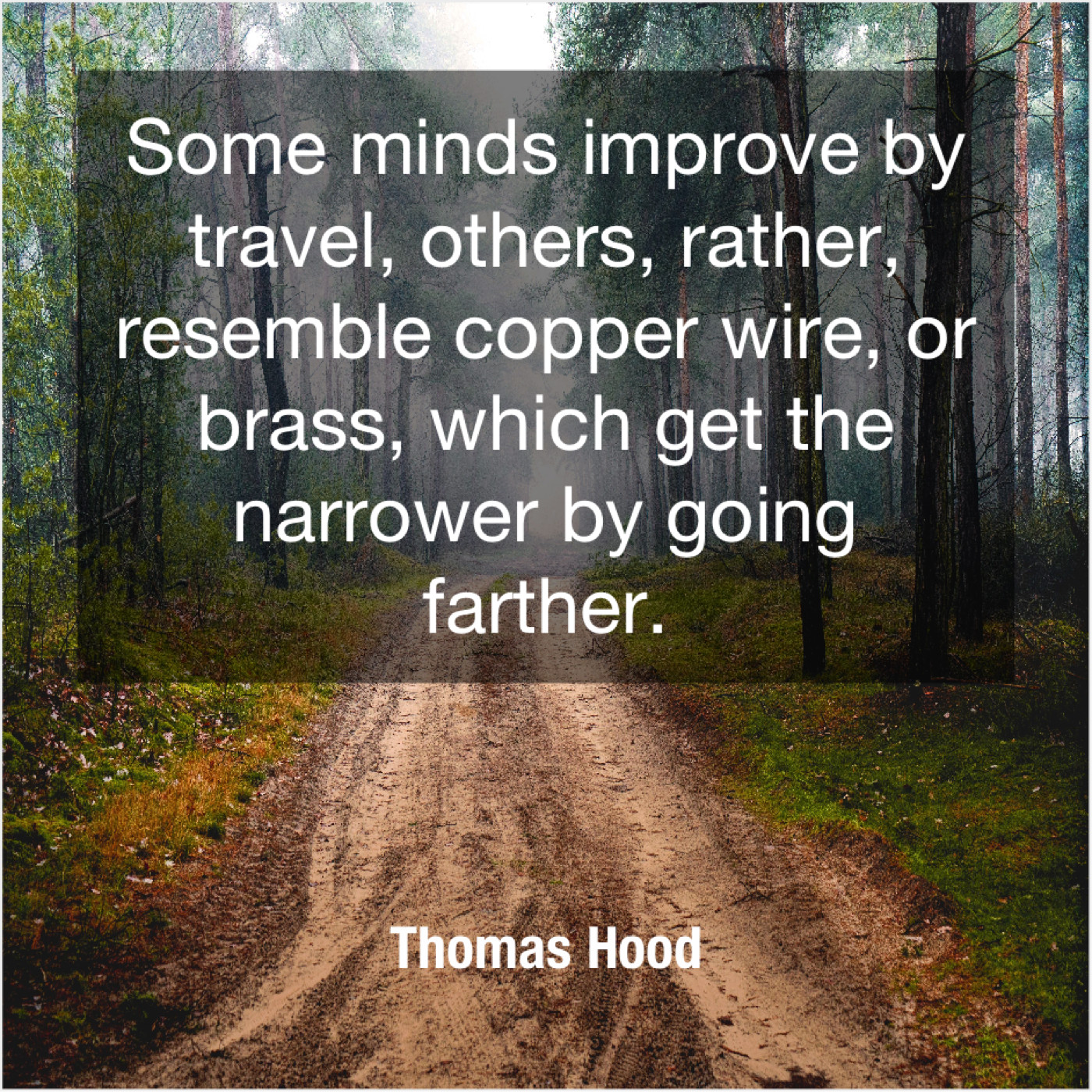 “Some minds improve by travel, others, rather, resemble copper wire, or brass, which get the narrower by going farther.”