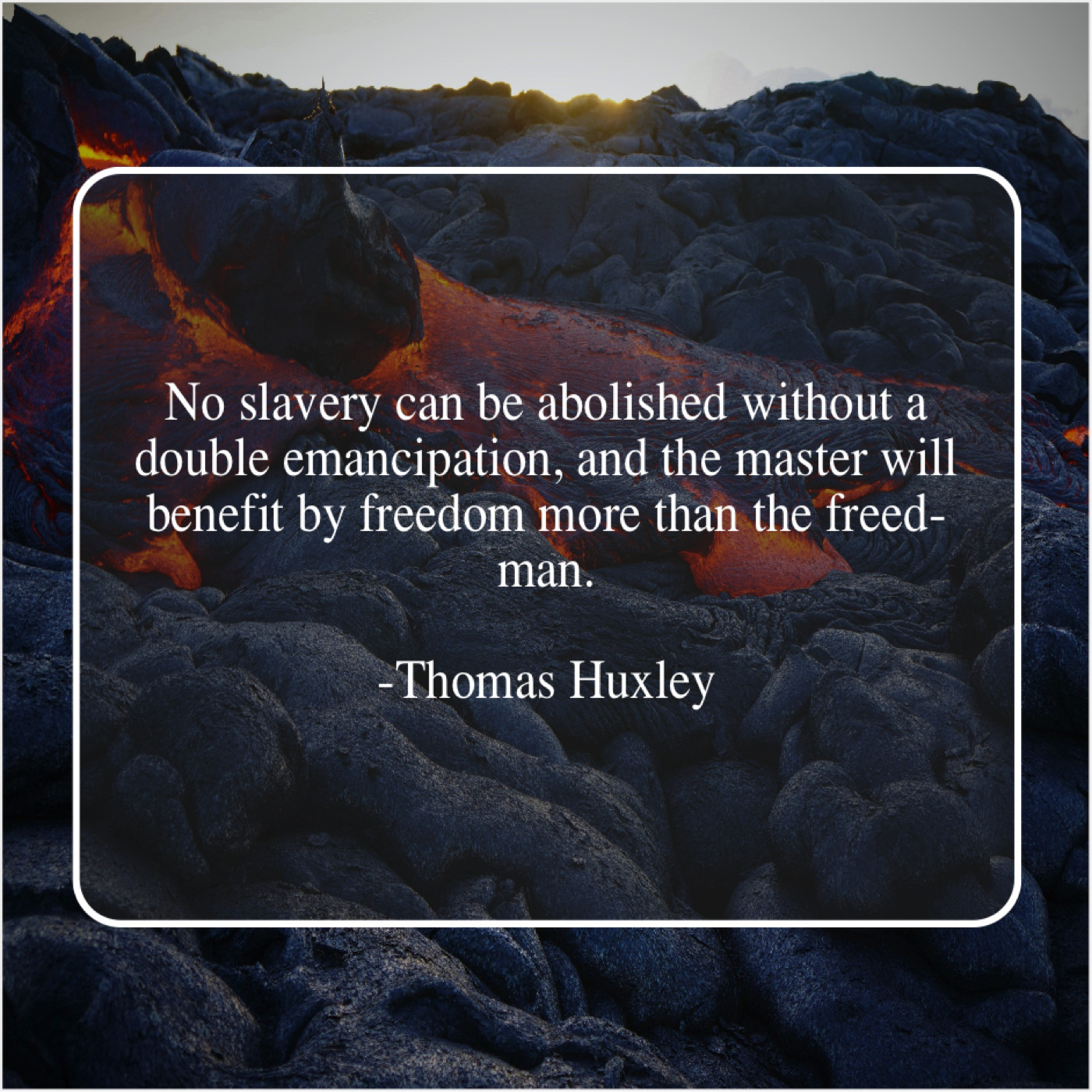 Thomas Huxley Thomas Huxley – No slavery can be abolished… April 8, 2019 admin “No slavery can be abolished without a double emancipation, and the master will benefit by freedom more than the freed-man.”-Thomas Huxley