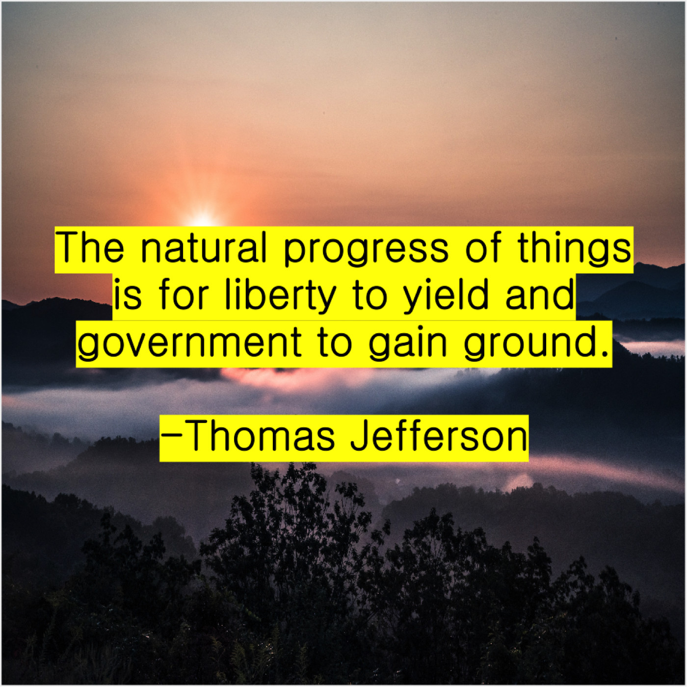 Thomas Jefferson Thomas Jefferson – The natural progress of things… January 2, 2019 admin “The natural progress of things is for liberty to yield and government to gain ground.”-Thomas Jefferson