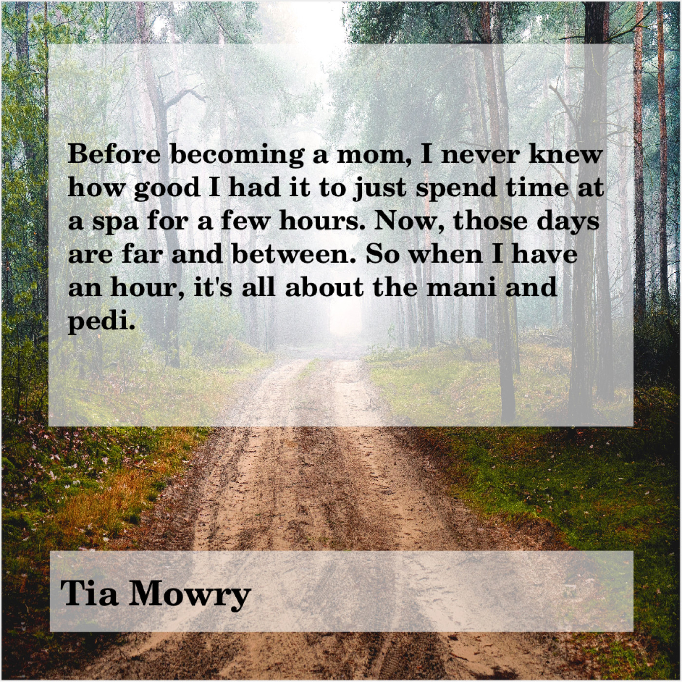 Tia Mowry Tia Mowry – Before becoming a mom, I… February 14, 2019 admin “Before becoming a mom, I never knew how good I had it to just spend time at a spa for a few hours. Now, those days are far and between. So when I have an hour, it’s all about the mani and pedi.”-Tia Mowry