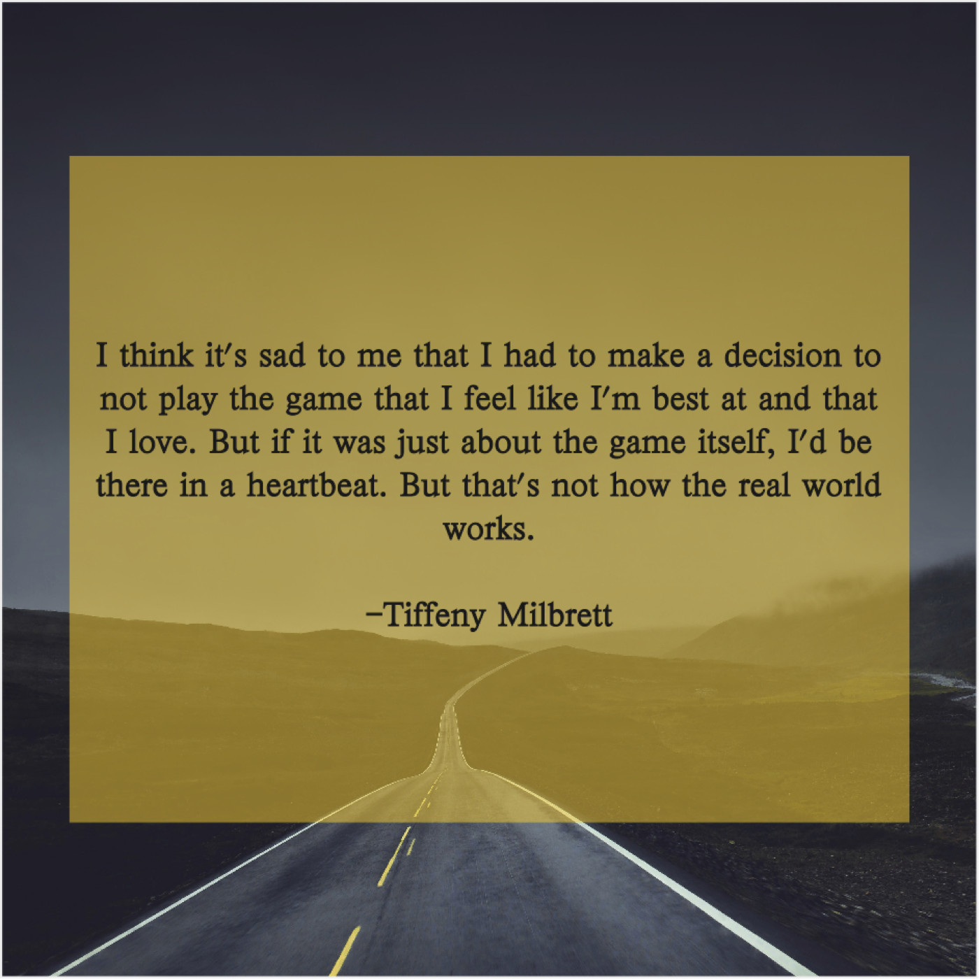 “I think it’s sad to me that I had to make a decision to not play the game that I feel like I’m best at and that I love. But if it was just about the game itself, I’d be there in a heartbeat. But that’s not how the real world works.”