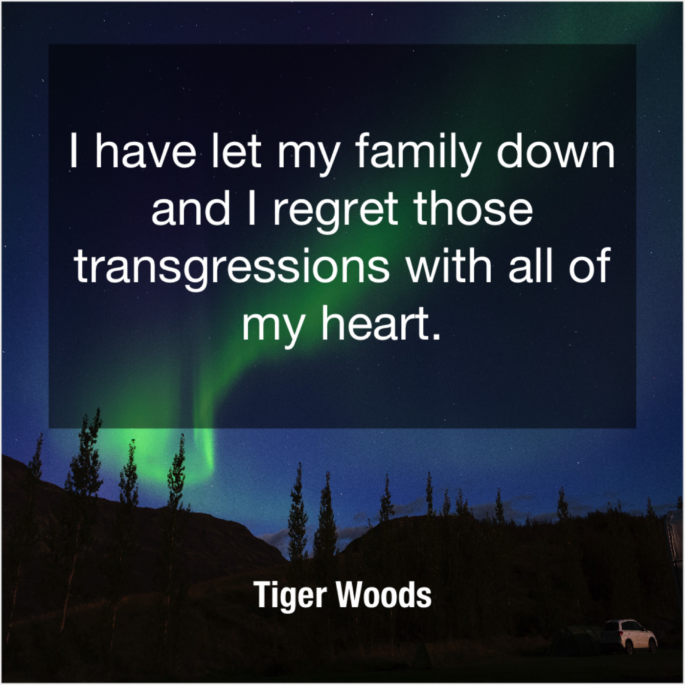 Tiger Woods Tiger Woods – I have let my family… May 3, 2019 admin “I have let my family down and I regret those transgressions with all of my heart.”-Tiger Woods
