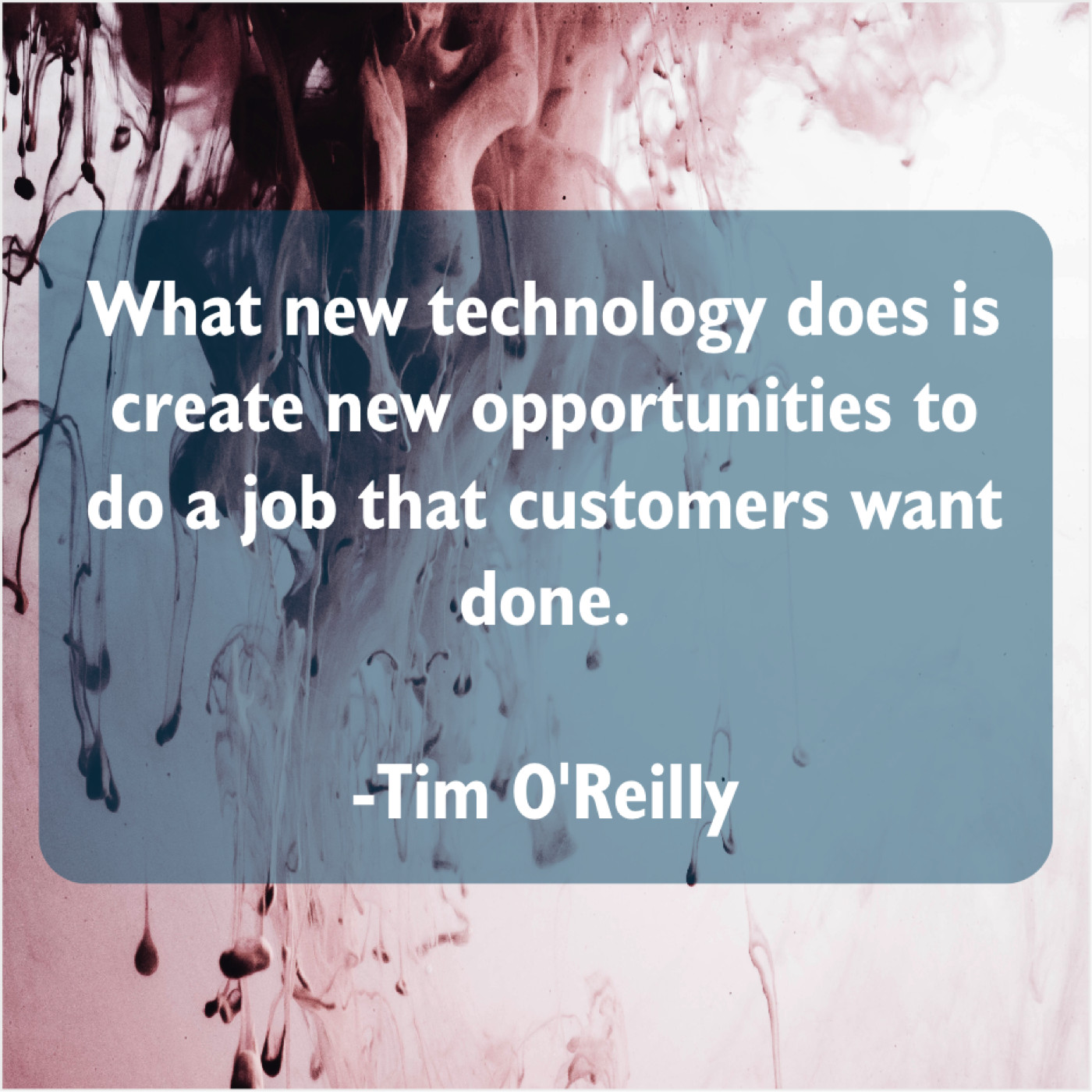 Tim O'Reilly Tim O’Reilly – What new technology does is… July 9, 2019 admin “What new technology does is create new opportunities to do a job that customers want done.”-Tim O’Reilly