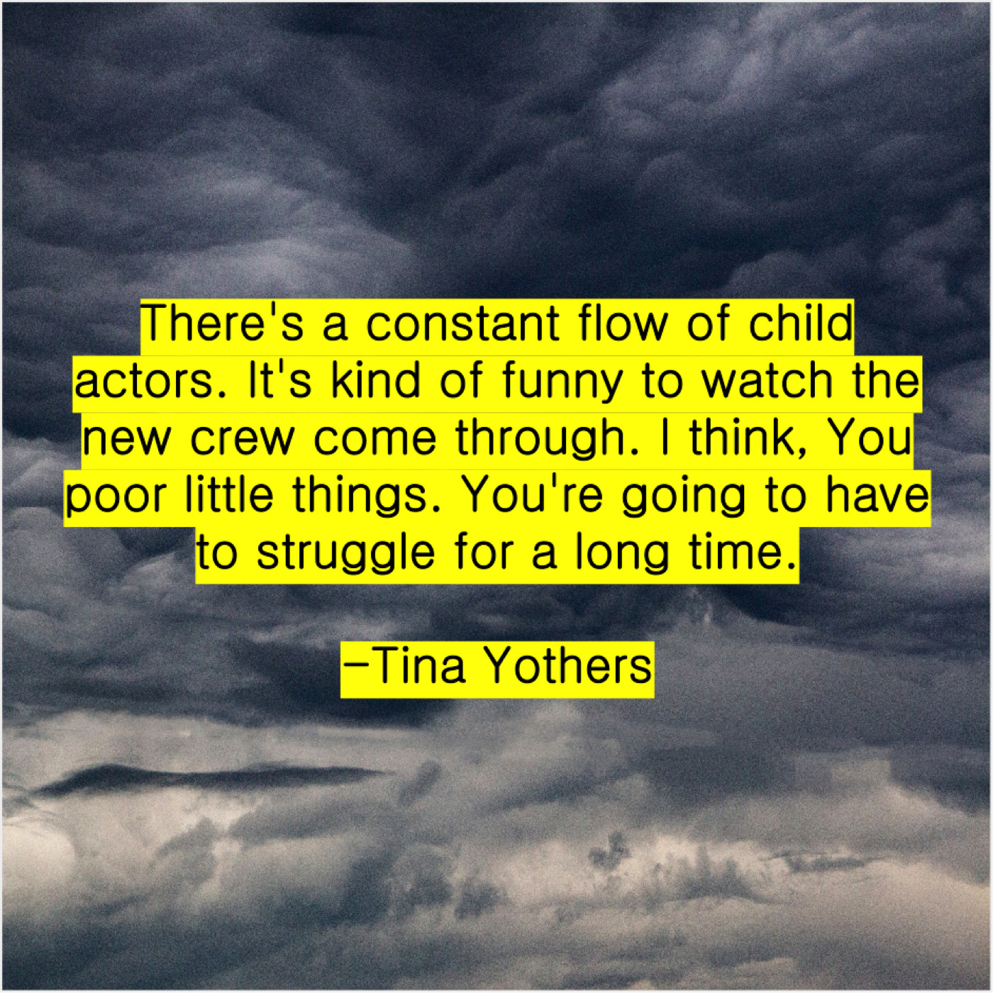 Tina Yothers Tina Yothers – There’s a constant flow of… April 8, 2019 admin “There’s a constant flow of child actors. It’s kind of funny to watch the new crew come through. I think, You poor little things. You’re going to have to struggle for a long time.”-Tina Yothers