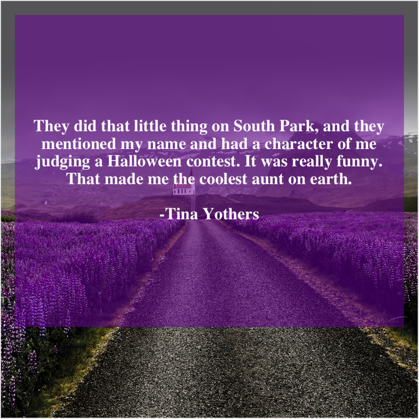 Tina Yothers Tina Yothers – They did that little thing… December 4, 2018 admin “They did that little thing on South Park, and they mentioned my name and had a character of me judging a Halloween contest. It was really funny.That made me the coolest aunt on earth.”-Tina Yothers
