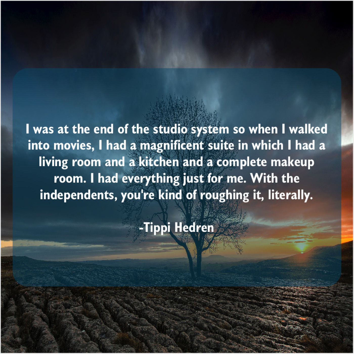 “I was at the end of the studio system so when I walked into movies, I had a magnificent suite in which I had a living room and a kitchen and a complete makeup room. I had everything just for me. With the independents, you’re kind of roughing it, literally.”