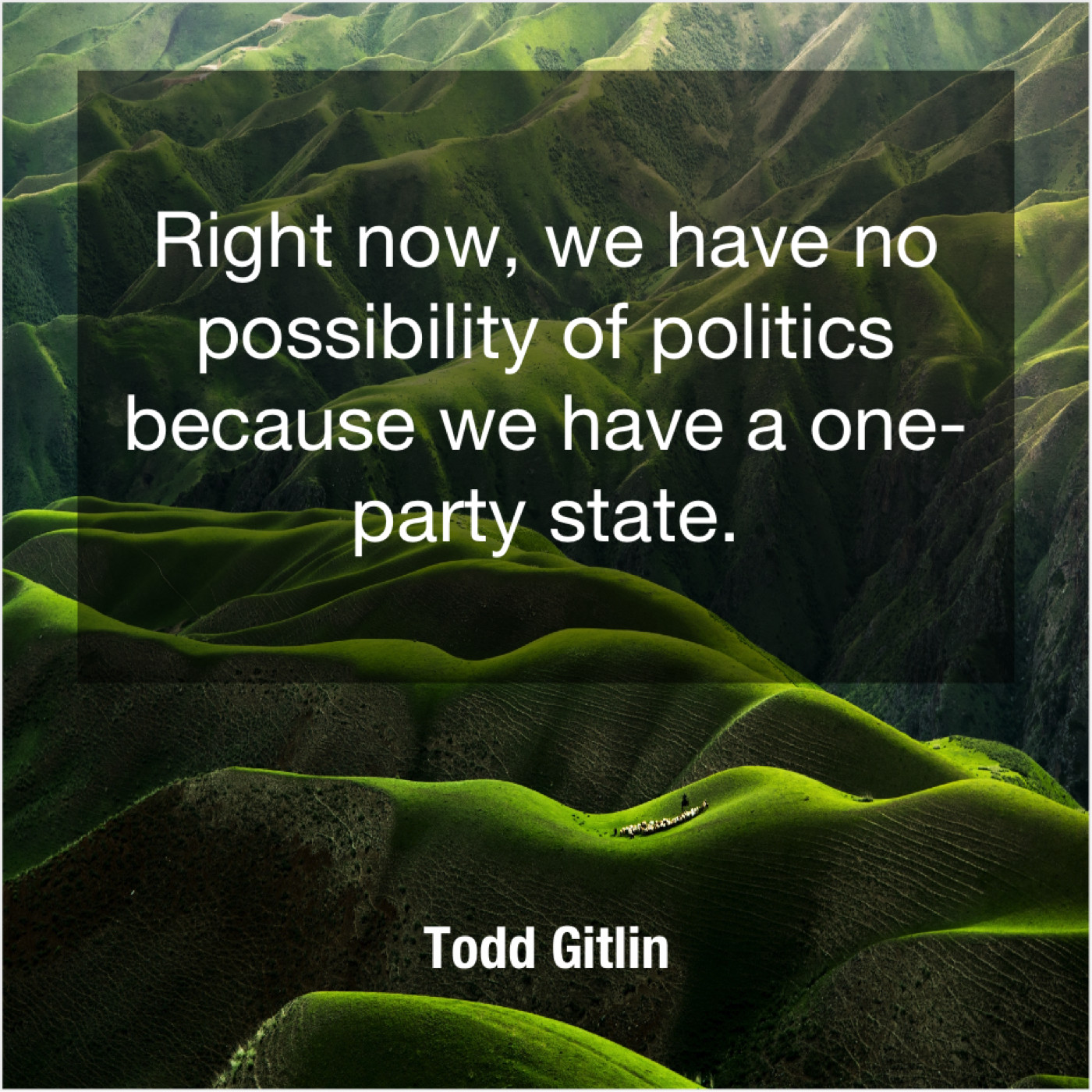 Todd Gitlin Todd Gitlin – Right now, we have no… October 31, 2018 admin “Right now, we have no possibility of politics because we have a one-party state.”-Todd Gitlin