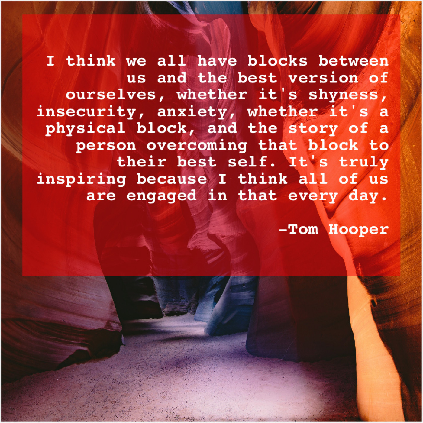 “I think we all have blocks between us and the best version of ourselves, whether it’s shyness, insecurity, anxiety, whether it’s a physical block, and the story of a person overcoming that block to their best self. It’s truly inspiring because I think all of us are engaged in that every day.”