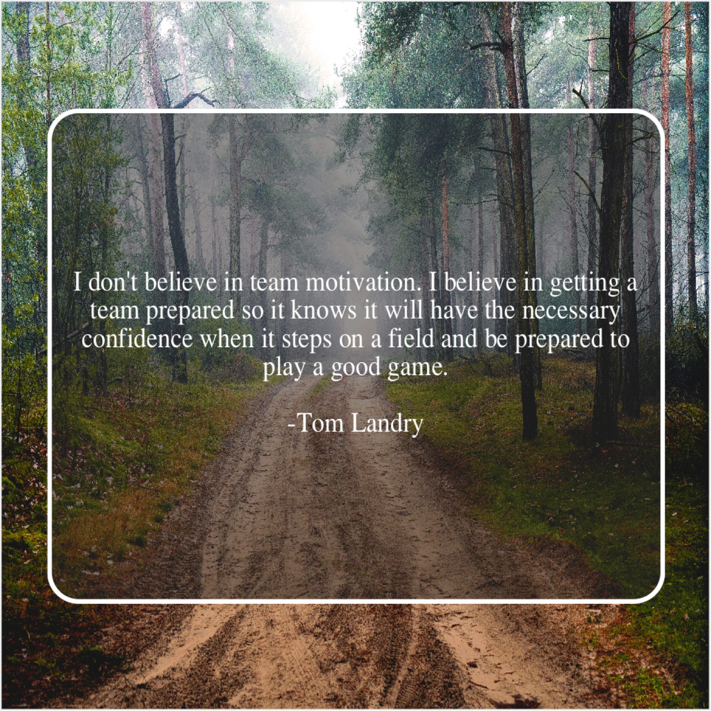Tom Landry Tom Landry – I don’t believe in team… October 5, 2019 admin “I don’t believe in team motivation. I believe in getting a team prepared so it knows it will have the necessary confidence when it steps on a field and be prepared to play a good game.”-Tom Landry