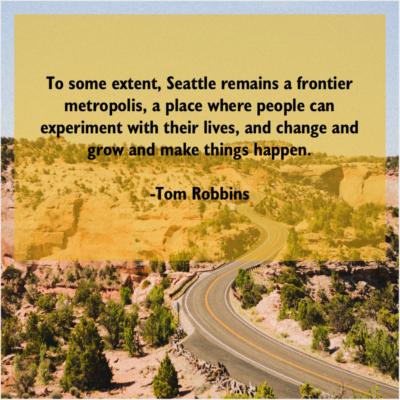 Tom Robbins Tom Robbins – To some extent, Seattle remains… October 4, 2019 admin “To some extent, Seattle remains a frontier metropolis, a place where people can experiment with their lives, and change and grow and make things happen.”-Tom Robbins