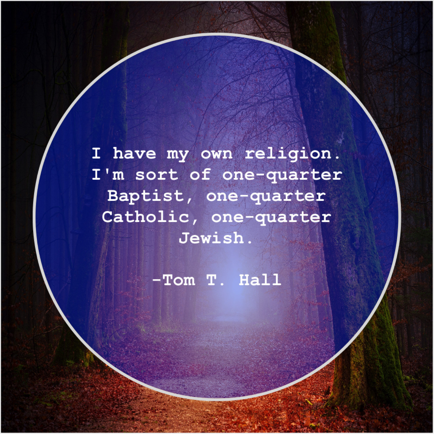 Tom T. Hall Tom T. Hall – I have my own religion… June 13, 2019 admin “I have my own religion. I’m sort of one-quarter Baptist, one-quarter Catholic, one-quarter Jewish.”-Tom T. Hall