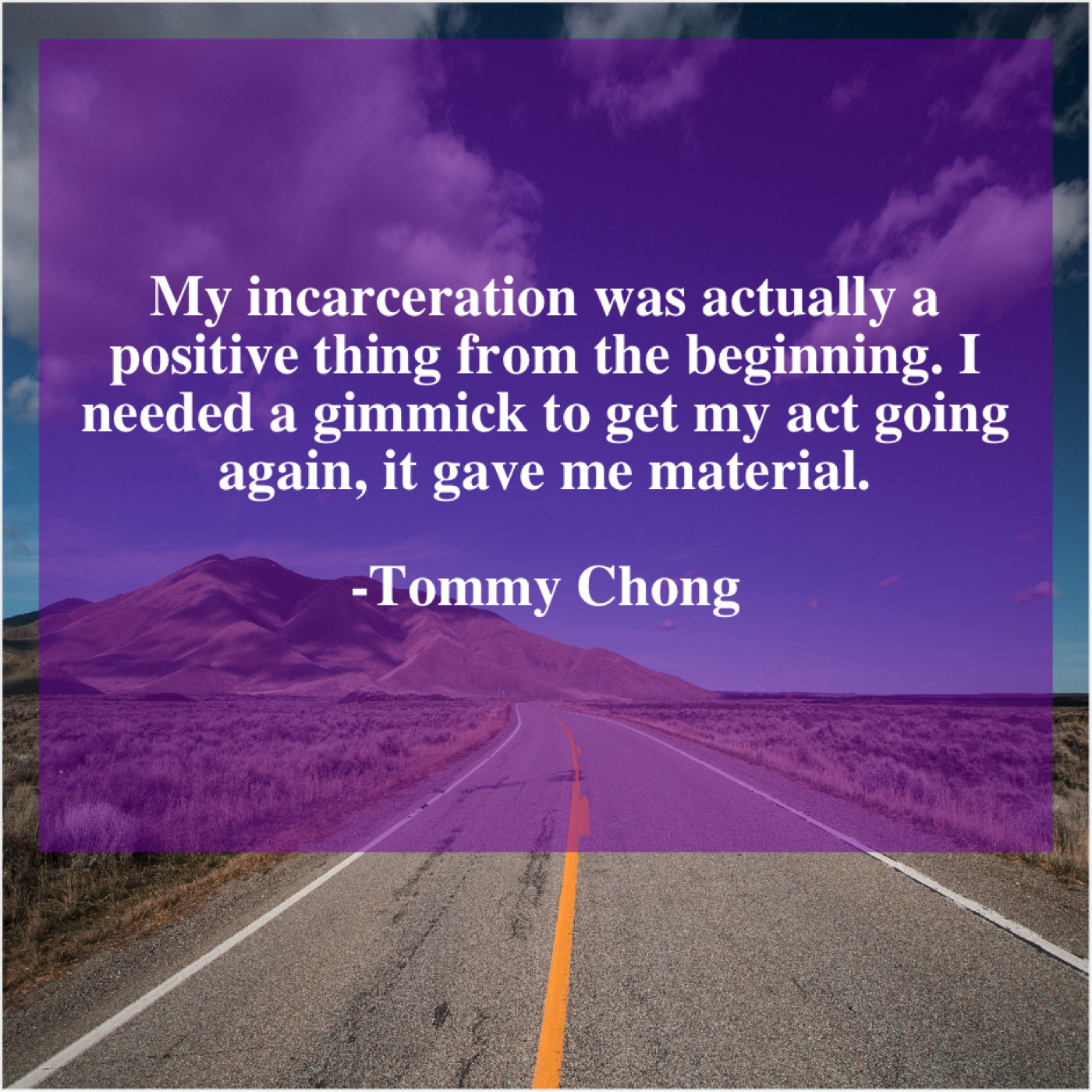Tommy Chong Tommy Chong – My incarceration was actually a… December 17, 2018 admin “My incarceration was actually a positive thing from the beginning. I needed a gimmick to get my act going again, it gave me material.”-Tommy Chong