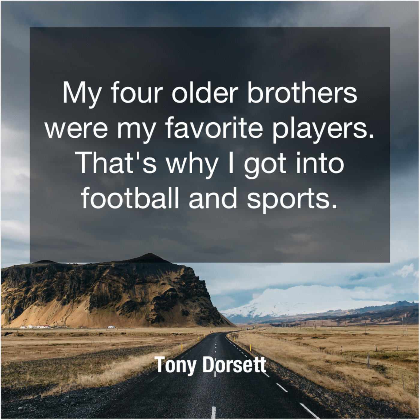 Tony Dorsett Tony Dorsett – My four older brothers were… March 1, 2019 admin “My four older brothers were my favorite players. That’s why I got into football and sports.”-Tony Dorsett