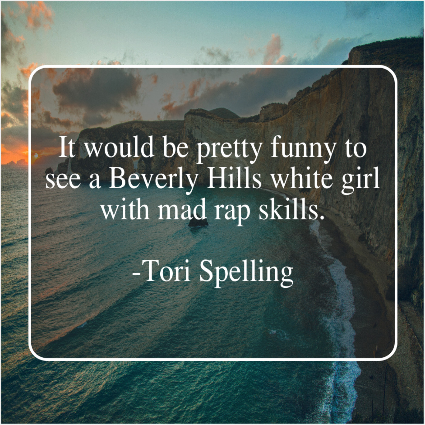 Tori Spelling Tori Spelling – It would be pretty funny… December 21, 2018 admin “It would be pretty funny to see a Beverly Hills white girl with mad rap skills.”-Tori Spelling