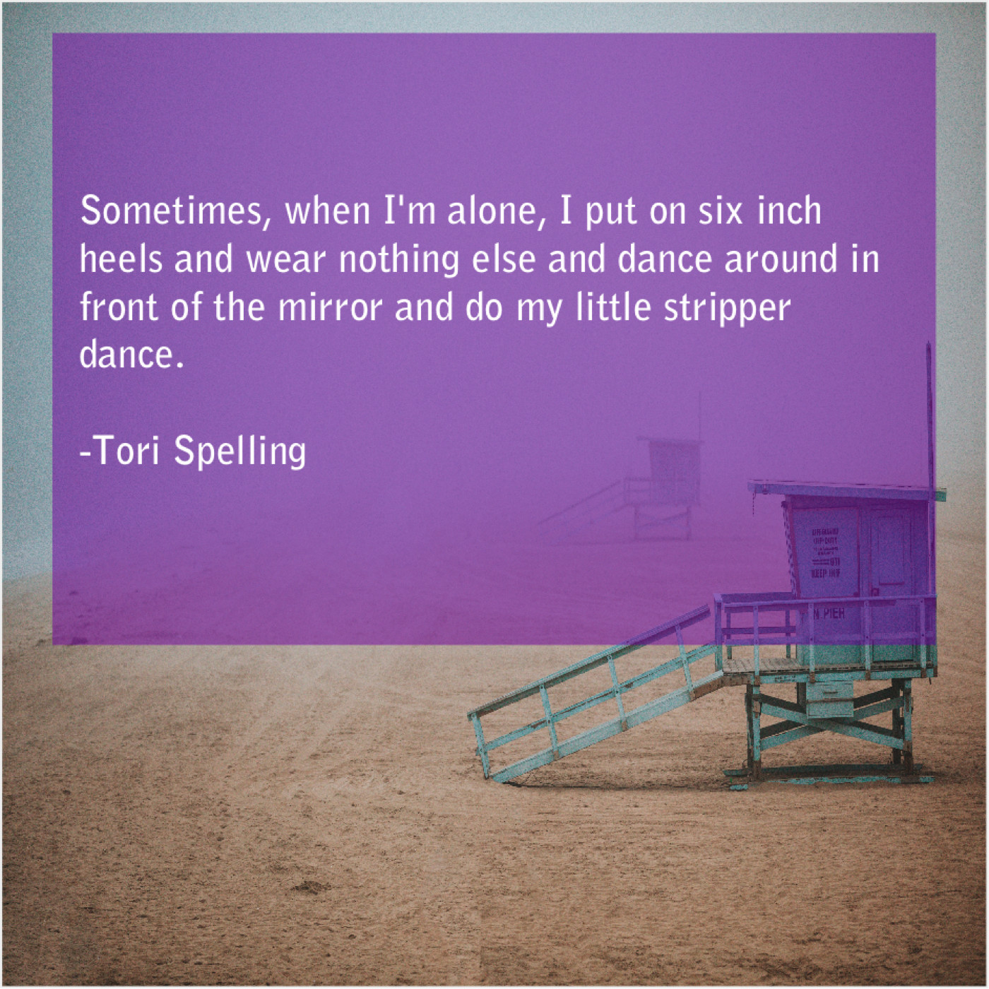 Tori Spelling Tori Spelling – Sometimes, when I’m alone, I… May 10, 2019 admin “Sometimes, when I’m alone, I put on six inch heels and wear nothing else and dance around in front of the mirror and do my little stripper dance.”-Tori Spelling