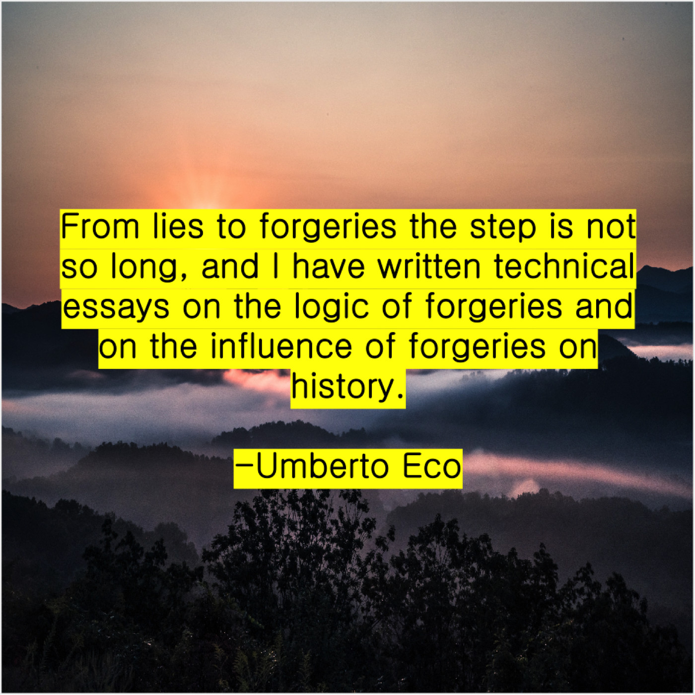 Umberto Eco Umberto Eco – From lies to forgeries the… July 31, 2019 admin “From lies to forgeries the step is not so long, and I have written technical essays on the logic of forgeries and on the influence of forgeries on history.”-Umberto Eco